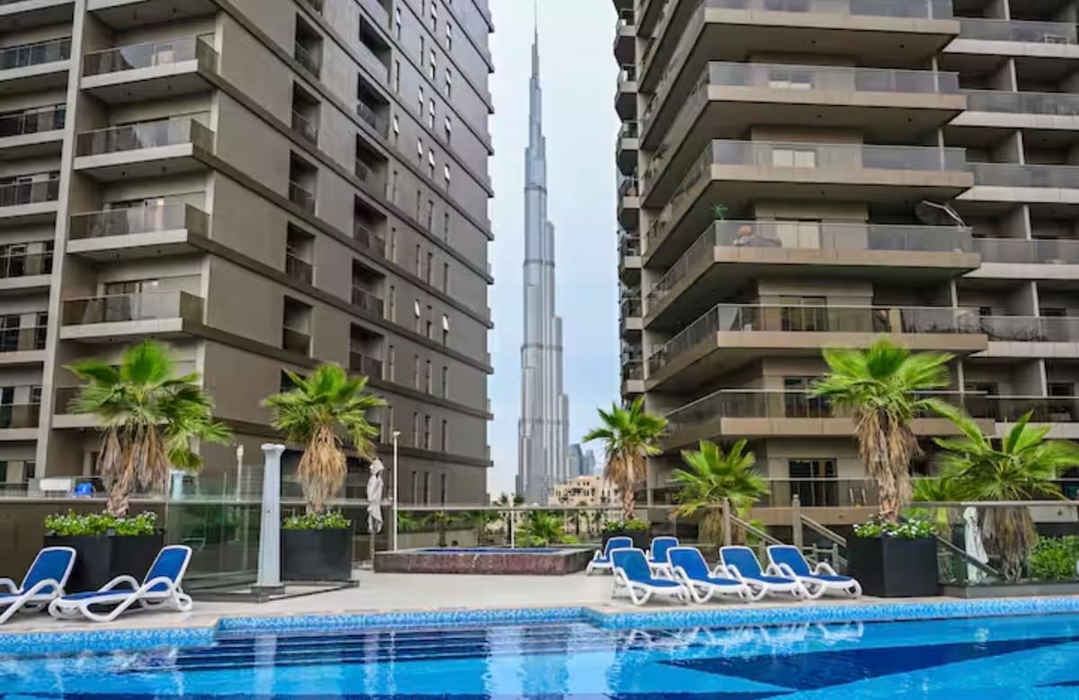 Welcome to your stylish home away from home in the heart of Dubai. This elegant 1-bedroom apartment offers breathtaking views of the Burj Khalifa from the rooftop infinity pool, jacuzzi, and terrace—the perfect backdrop for a truly memorable stay. Whether you're a family looking for comfort and convenience, or a business traveler seeking a high-end base, this space has everything you need. Enjoy modern interiors, premium amenities, and easy access to downtown Dubai.