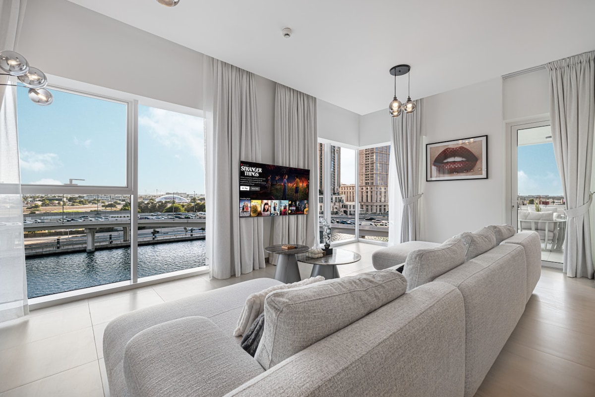 2卧室,享有壮丽的Burj和运河景,位于42楼,游戏室