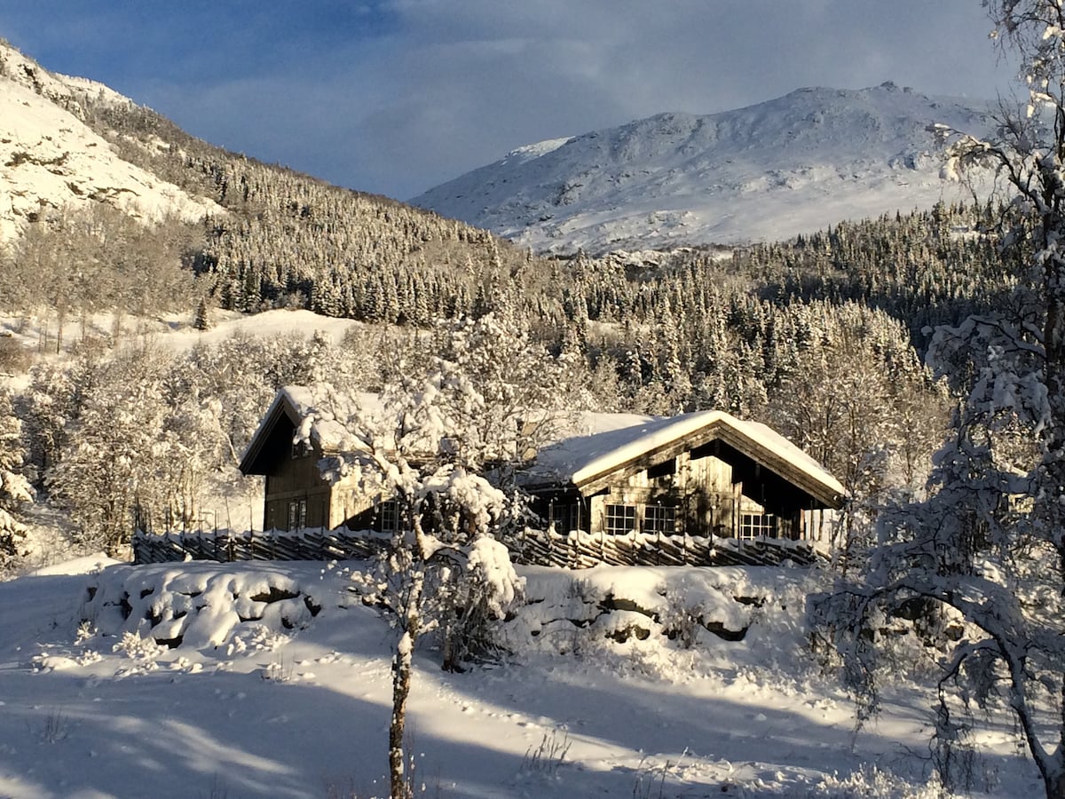 Bare 2,5 timer kjøring fra Oslo. Alpint og langrenn eller bare kos i sofaen foran peisen, gode spaserturer ved autentisk og ekte fjellhytte med alle moderne fasiliteter. Mye lokal matproduksjon i Valdresområdet og kjøkkenet står klart for herlige måltider. Hytta ligger helt for seg selv, uten gjenboere. Et perfekt og autentisk "hideaway". Perfekt for voksne par/ venner/ familier som søker rolig og genuin hytteatmosfære, stillhet og komfort. *Innendørs og utendørs spill, leker/ aktiviteter