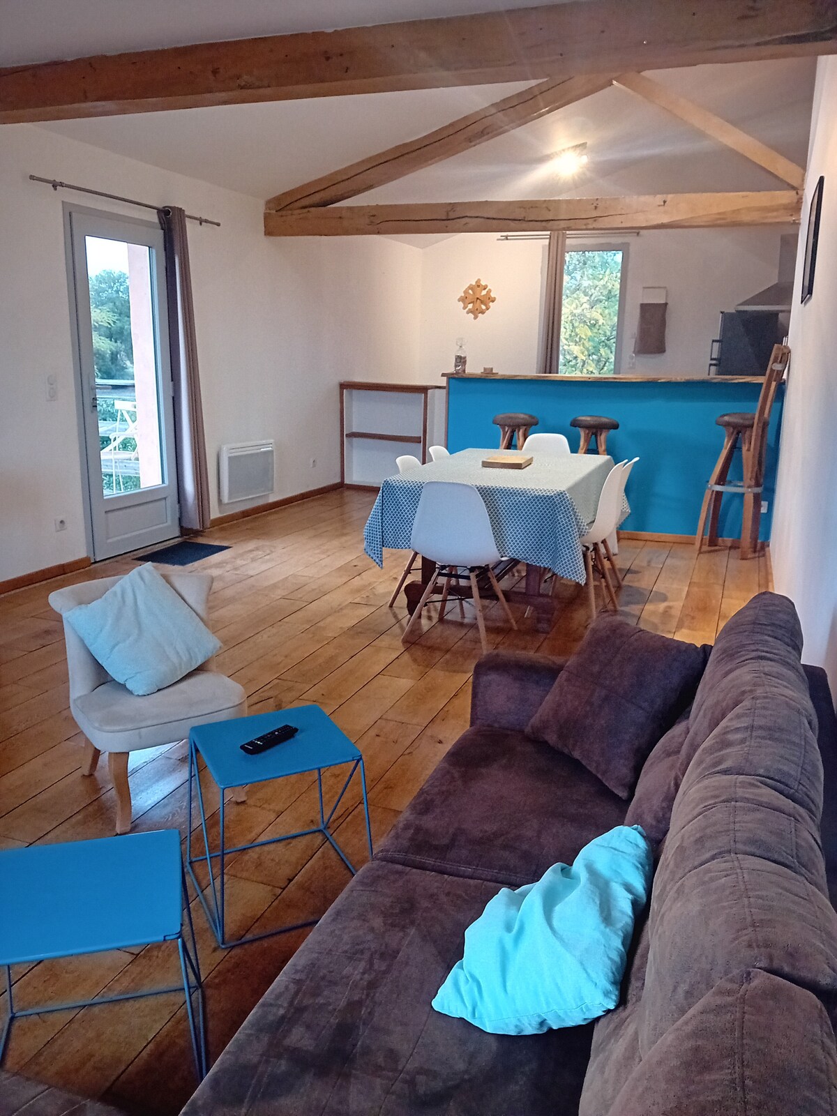 Nous vous proposons un gîte à étage, mitoyen à notre maison familiale, avec un ancien pigeonnier et un four à pain daté de 1613. Il se situe en pleine campagne, dans un hameau de 3 maisons, la ville la plus proche Graulhet se situe à 8km (ville de 15 000 habitants) au centre du Tarn. Il bénéficie d'une vue sur les Pyrénées.