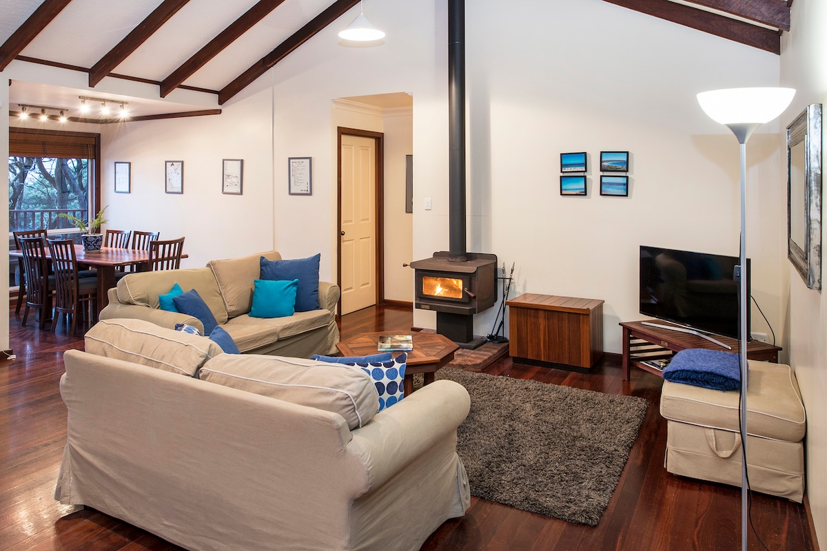 This quiet secluded two-story villa just 100 metres from Yallingup beach is fully equipped for a wonderful self- catering family stay. 3 bedrooms and 2 bathrooms upstairs and two living areas downstairs with multipurpose room, satellite TVs and laundry. It has a private courtyard with BBQ and views to Yallingup hill. Wifi and private parking. Close to restaurants, wineries, art galleries, mazes, walk trails, surf beaches, snorkeling in lagoon, bike tracks and more,10 minutes from Dunsborough.