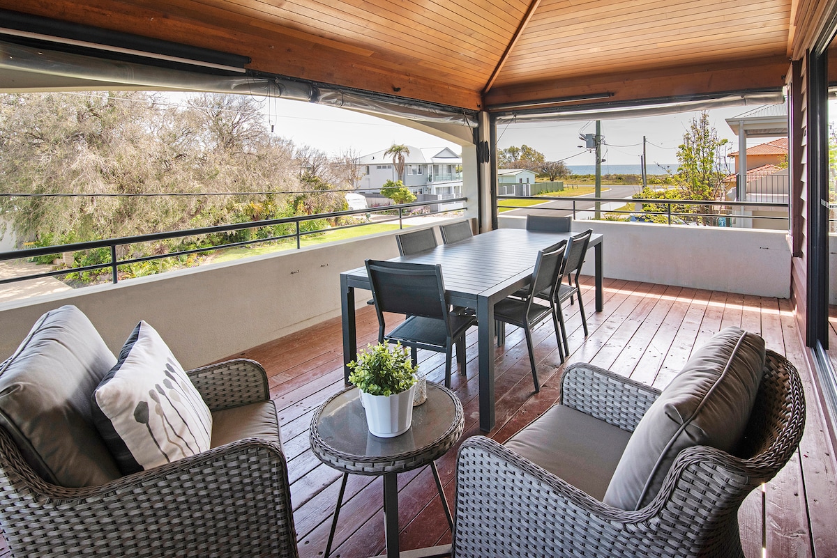 Luxury, views and comfort. Free secure parking. Walking distance to everything. Beach, cafes, bars, jetty, parks. You have entire spacious top floor with private entrance and large open balcony. Uninterrupted views up 14 steps interior staircase and a firm handrail. Indulgent luxury to just relax , a fun beach holiday, or a family break! Lounge on the balcony and enjoy the scenery. Close to Margaret River surf and wineries. Great designer kitchen, bbq or walk to cafes, restaurants nearby!