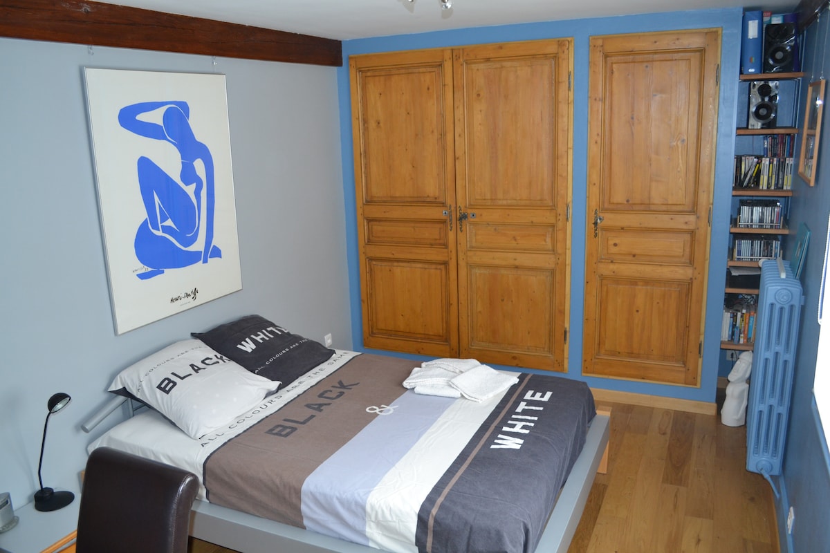 15mn à pied du stade nautique de Vaires. Soirées festives et réceptions non autorisées. Chambre, petit salon avec canapé-lit attenant et en souplex avec accès direct par le jardin. En centre-ville, 7 mn à pied des commerces et de la gare qui vous amène à Paris en 18 mn. Accès à Disney 25mn en voiture ou par le Rer A en 45mn. Un endroit idéal pour profiter de Paris tout en étant à la "campagne" ! Petit-déjeuner inclus. Accès à notre cuisine. Caution : We have a dog and a cat