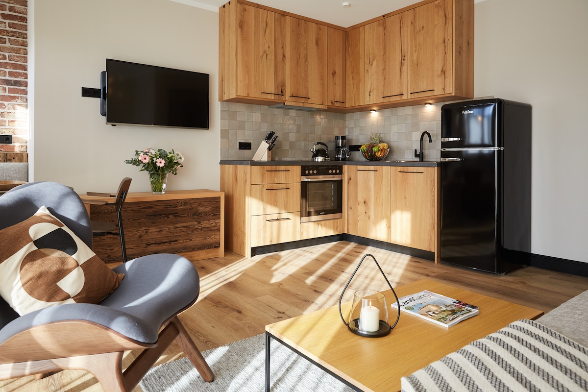 Direkt an der Gracht im Hinterhof gelegen liegt die Loftwohnung mit großer Terrasse im Erdgeschoss. Ein Strandkorb und ein großer Tisch mit Stühlen zum Arbeiten und Essen ermöglichen einen Indoor und Outdoor Aufenthalt. Das Loft selbst ist untypisch für Friedrichstadt. In eine alte Werkstadt im Hinterhof wurden zwei charmante, hochwertige Loftwohnungen in 2023 gebaut. Fußbodenheizung und grosszügiger Innenausbau bieten alles, was Loftliebhaber sich wünschen. Kajaks/SUPs sind vor Ort und inkl.