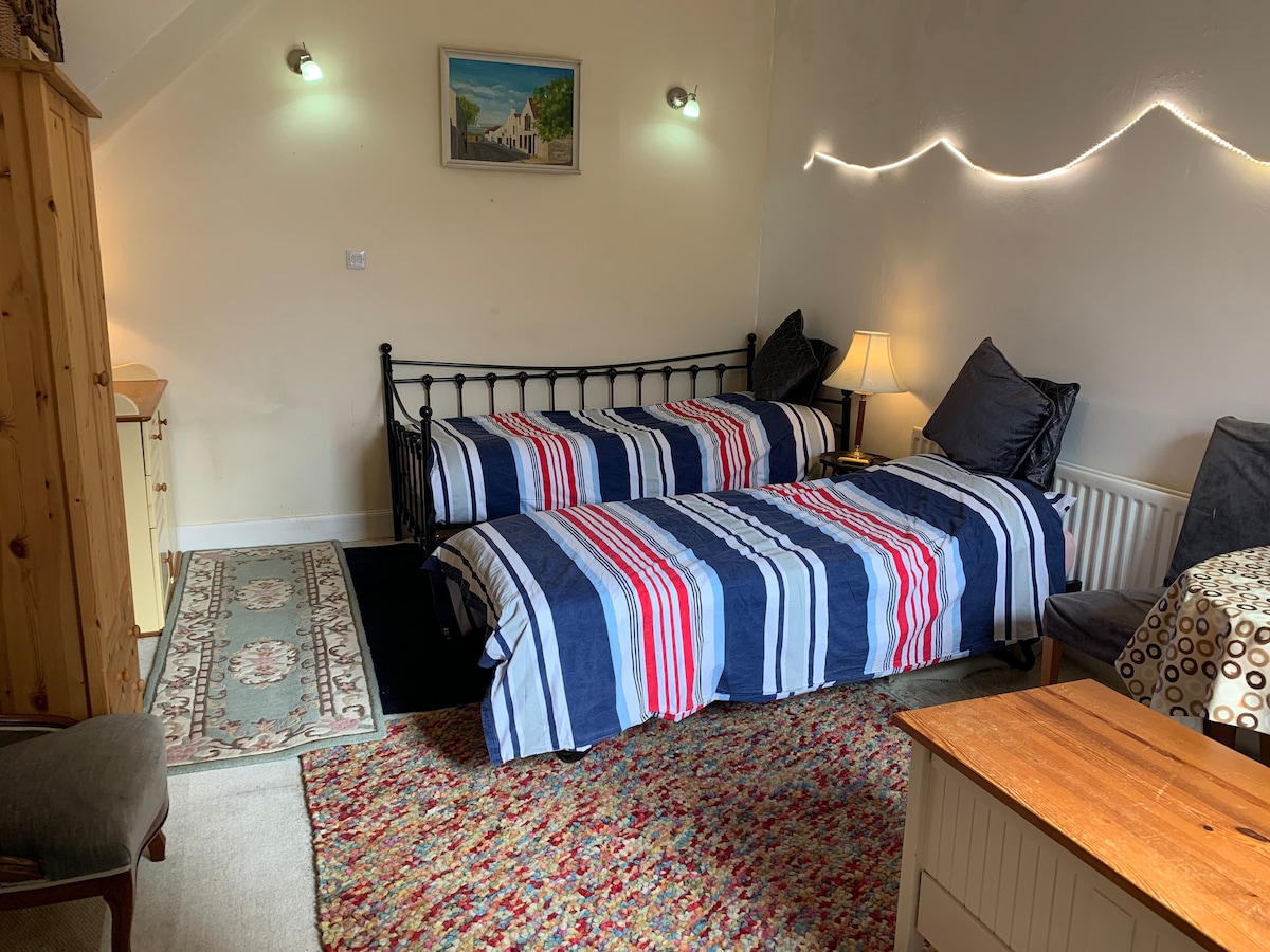 2nd Floor flat is located a few hundred yards from the ferry port and you can see when the boat has arrived from the living room window. Space consists of two bedrooms - one double and one twin, entrance hall, two large cupboards - one which has an TV and Xbox, and a living area which also has the kitchen at one end of the room. There is a washing machine, Xbox one, Wii U, Netflix, Amazon Prime and Sky Glass TV and Sky hub in one bedroom.