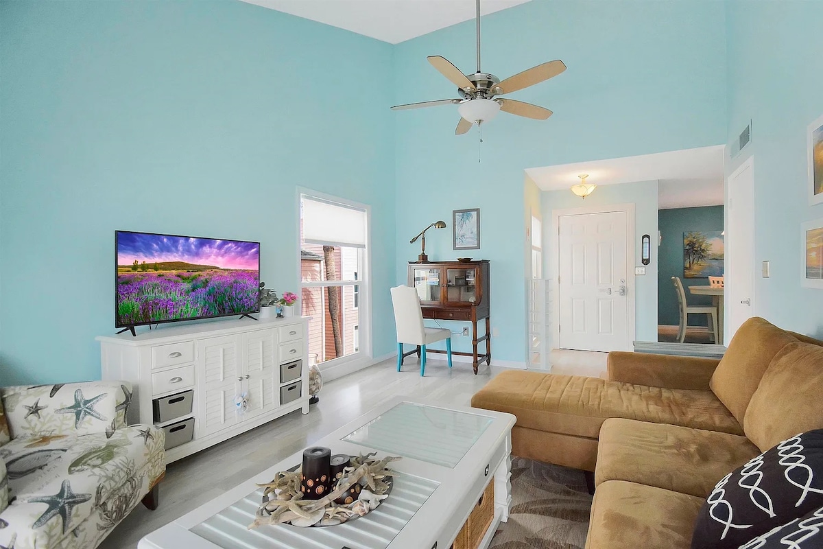 Relax and unwind at our beautiful beach getaway. This one bedroom condo is located close to all St. Augustine has to offer. You can walk to the beach or take a quick drive to historic downtown. Ocean Village Club is a gated complex that has private beach access just a seven minute walk from your door, two swimming pools, tennis courts, grilling area, and free parking. This second floor unit is light and airy, immaculate, and beautifully decorated. We are family owned and operated.