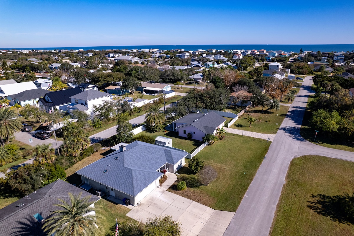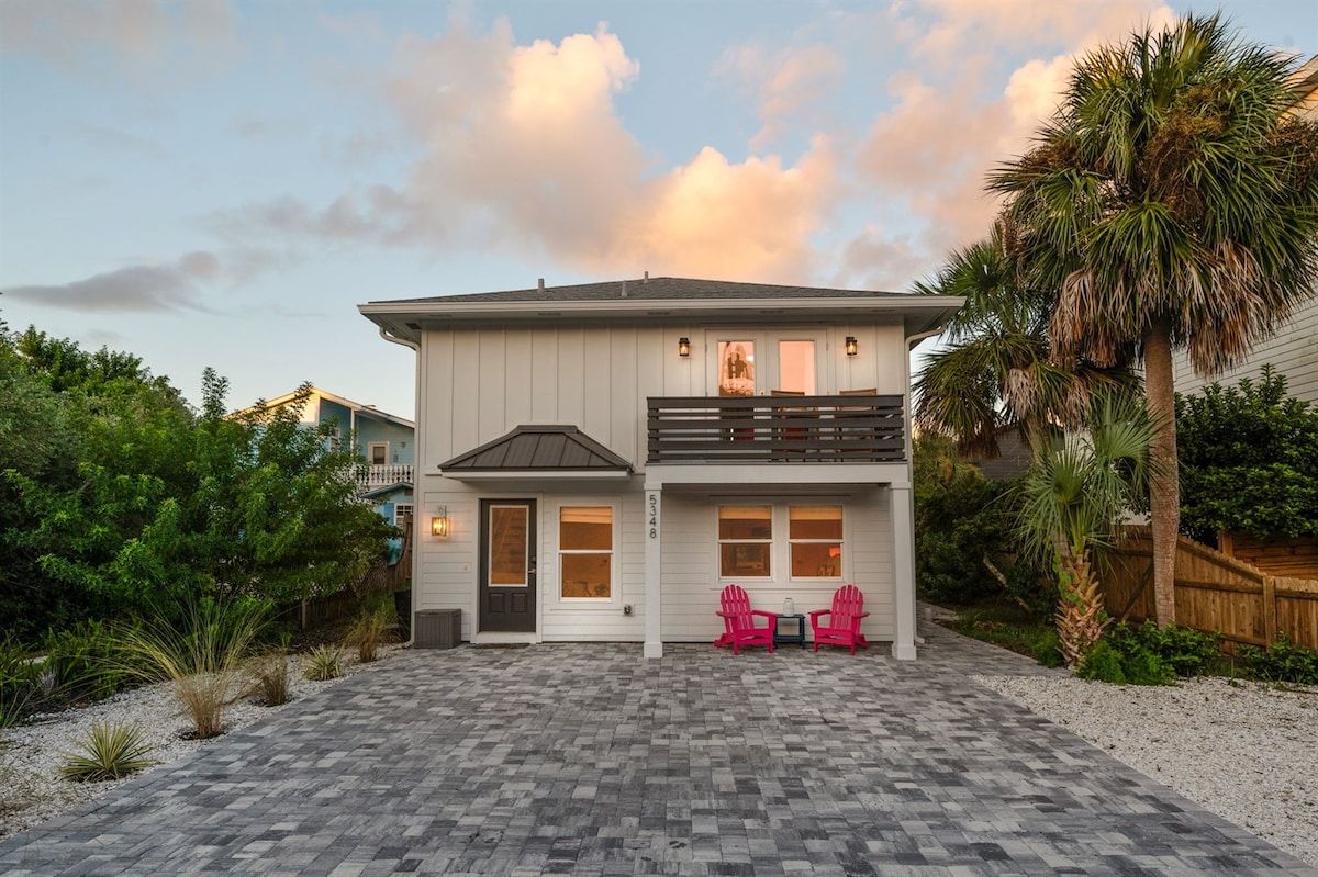 🏝️ Welcome 2026 Spring & Summer guests to your PRIVATE beach house! Walk to the beach, restaurants, arcade, coffee & yoga. 10min drive to historic downtown St. Augustine. Fenced yard, covered deck, grill, fire pit+ luxe outdoor shower. 3 bed/2 bath, sleeps 6. Kid/pet friendly. Modern kitchen. Remote workspace. 65" TV. ORIGINAL NINTENDO & 650+ games. 2 bikes, 2 chairs, + beach cart. Free coffee. Peaceful & quiet street yet close to everything. Always 5-star service hosted by hospitality pros! ✨