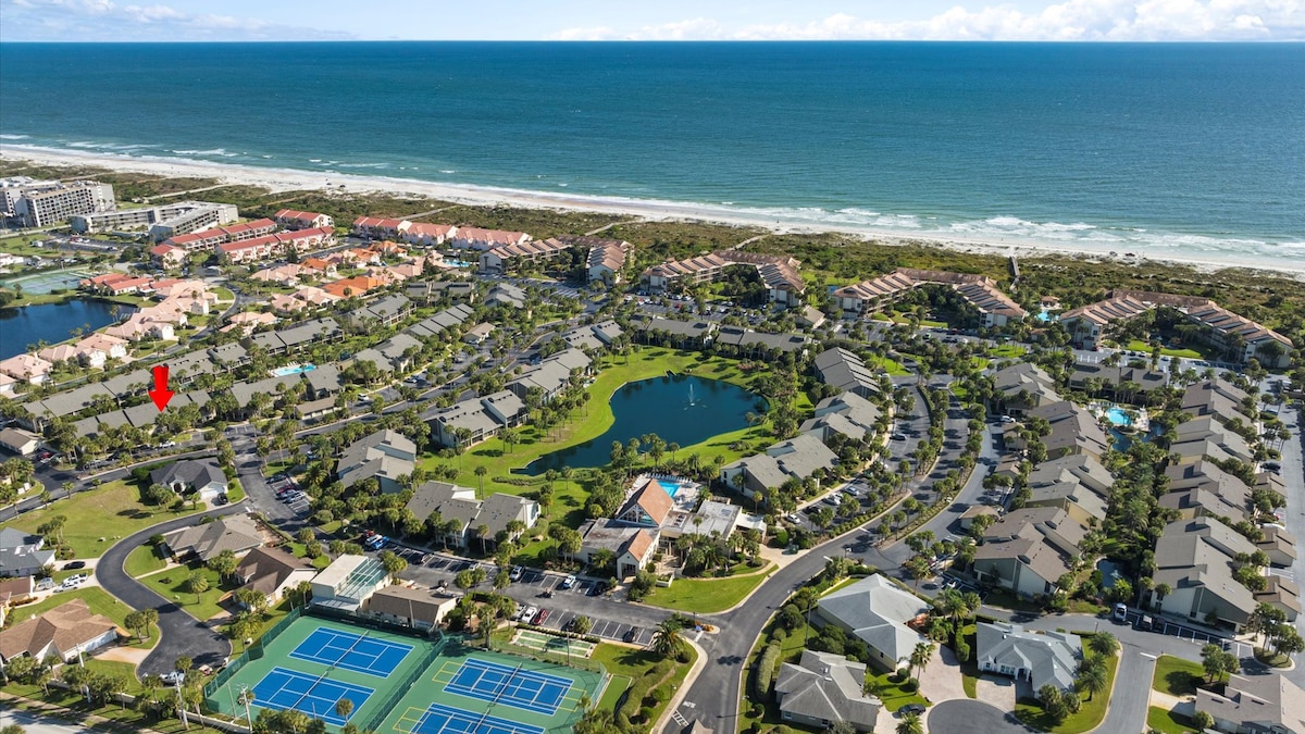 Save my home to your wishlist by clicking on the heart in the upper right corner! *Book 3 nights, get the 4th night 30% off!* >100 Steps from the beach! >Ocean and Pool Views! >Indoor heated pool, outdoor unheated pool, jacuzzi! >Sauna, tennis, racquetball, fitness center >Downtown St. Augustine is a 17 minute drive >Cable TV and streaming apps. Fast Wifi. >Drip coffee maker >Washer + Dryer in the condo >Spacious private patio >2-3 days of supplies provided (TP, trash bags, pods, etc)