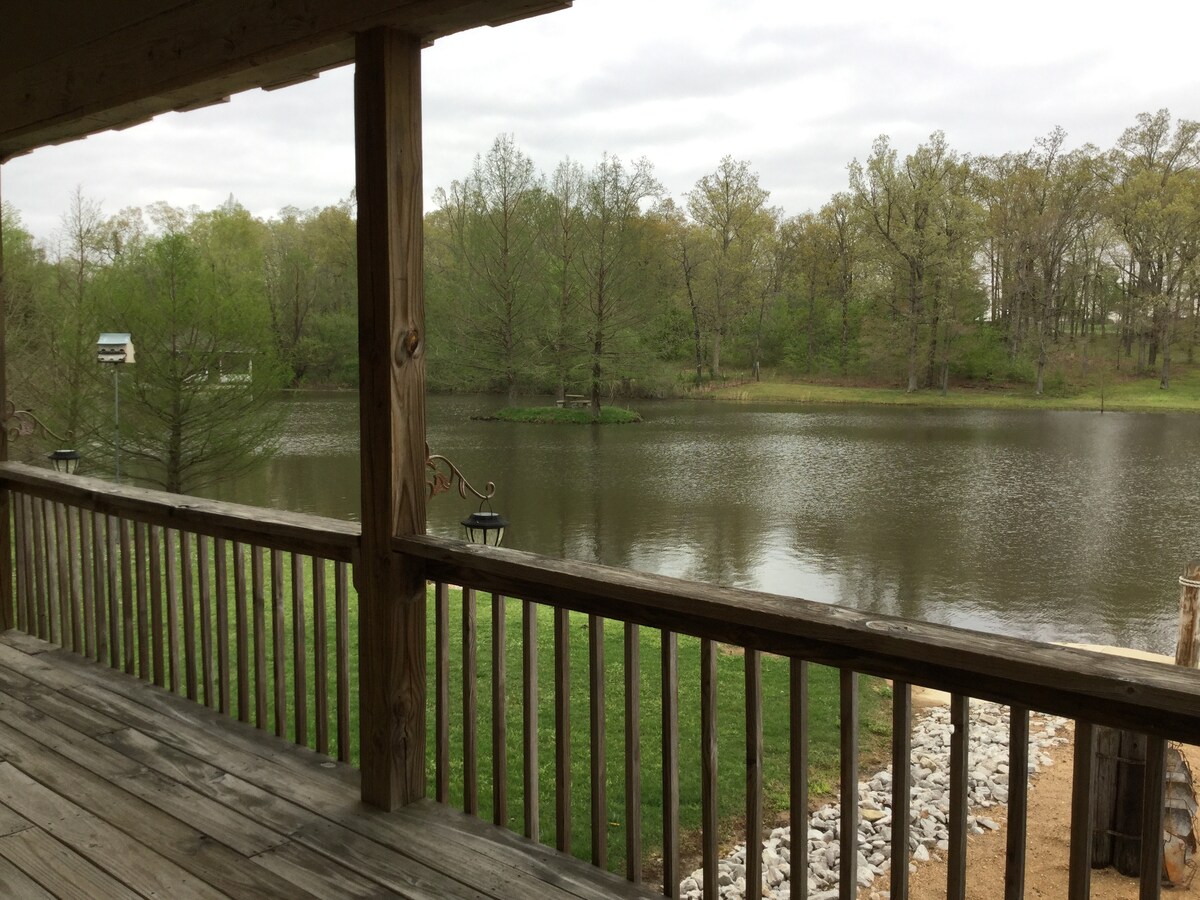 800 sq ft cabin with private 10 x 30 front porch overlooking 5 acre lake. The living and kitchenette area have beautiful views of the lake. The kitchen contains a small refrigerator and microwave. The kitchen does not contain a stove. The cabin is a one bedroom with queen size bed, separate dressing room with desk/vanity area and an oversized bathroom with walk-in shower. Private parking. WiFi.