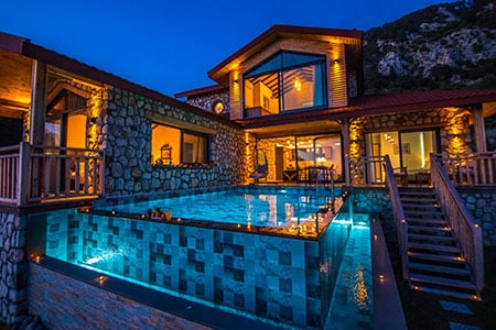 Özel dizayn yapılmış taş ve ahşap uyumlu tatil villası, eşsiz kelebekler vadisi,deniz ve doğa manzarası sahiptir. Tarihi lkya yolu üzerinde yer almakta yürüyüş için uygun jakuzi şömine çoçuk parkı ve oyuncakları misafirin kullanımına sunulacak gün batımını izlemeninin keyfine varacağınız tatil sizi beklemekte Sauna bir saat 10$ ek ücret Havuz tuzlu,kullanımı ücretsiz Havuz ısıtma günlük 60$ ek ücret havuz cam ile kapalı yanlar açıla bilir ısıtması (27-29) derece 2 gün önce onay verilmeli