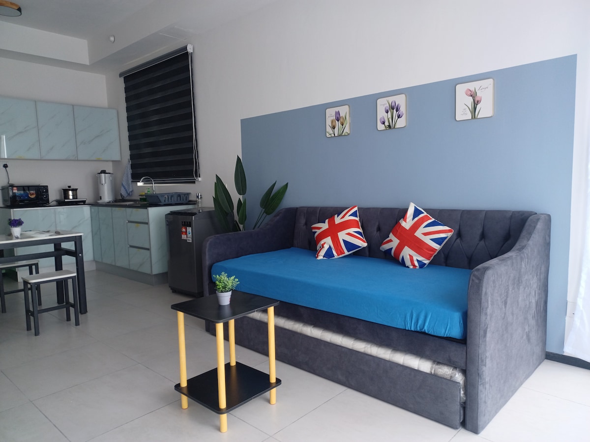 Cozy Seaview Studio Suite (Available Check In for self-driving only) Our home stay is a studio suite & private condo near Penang bridge with strategic location where you can easily access to Penang bridge,queensbay mall and Bayan Lepas industrial zone.Our studio suite offer one car or one motor parking lot and It is an open concept studio with no bedroom and kitchen attached which is suitable for young couple or family with young children and can comfortably accommodate up to2adults and 1kid