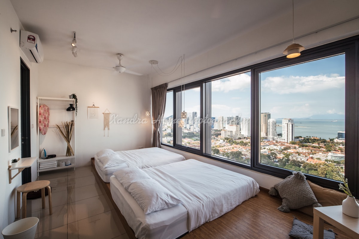 a BRAND NEW SEAVIEW DELUXE SUITE in the PERFECT location 完美海景套房哦! Charming, cosy seaview suite with NETFLIX, Unlimited TIME WiFi & COWAY WATER DISPENSER located just a few km away from the city centre & the UNESCO World Heritage Site By feet: - 7-11 (24hrs) Convenience Store at ground floor - Food stalls, restaurants, super market & wet market By car: 5 km - UNESCO Heritage Site / Georgetown 6 km - Gurney Drive 8 km - Shopping Mall 14 km - Airport 16 km - Batu Ferringhi beach