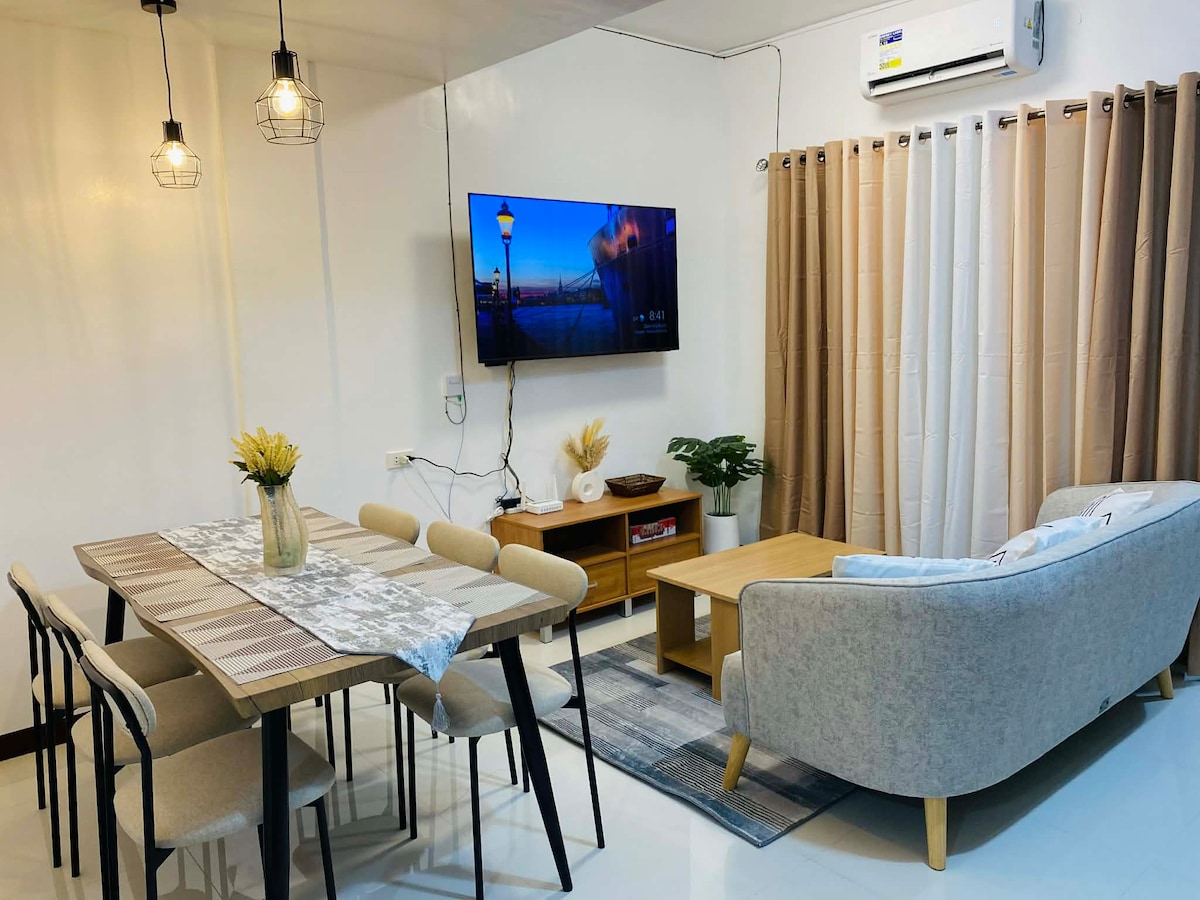 Enjoy a hassle-free stay with easy self-check-in at this cozy two-story home in a peaceful gated community. It is near malls, restaurants, and hospitals. The home features two bedrooms, a full kitchen, Smart TV with Netflix, WiFi, hot and cold showers, and a 3,000L water tank. Outdoor garden seating and a manual griller are also available. The home is pet-friendly—just make sure your furry friends wear diapers. Perfect for short or extended stays!