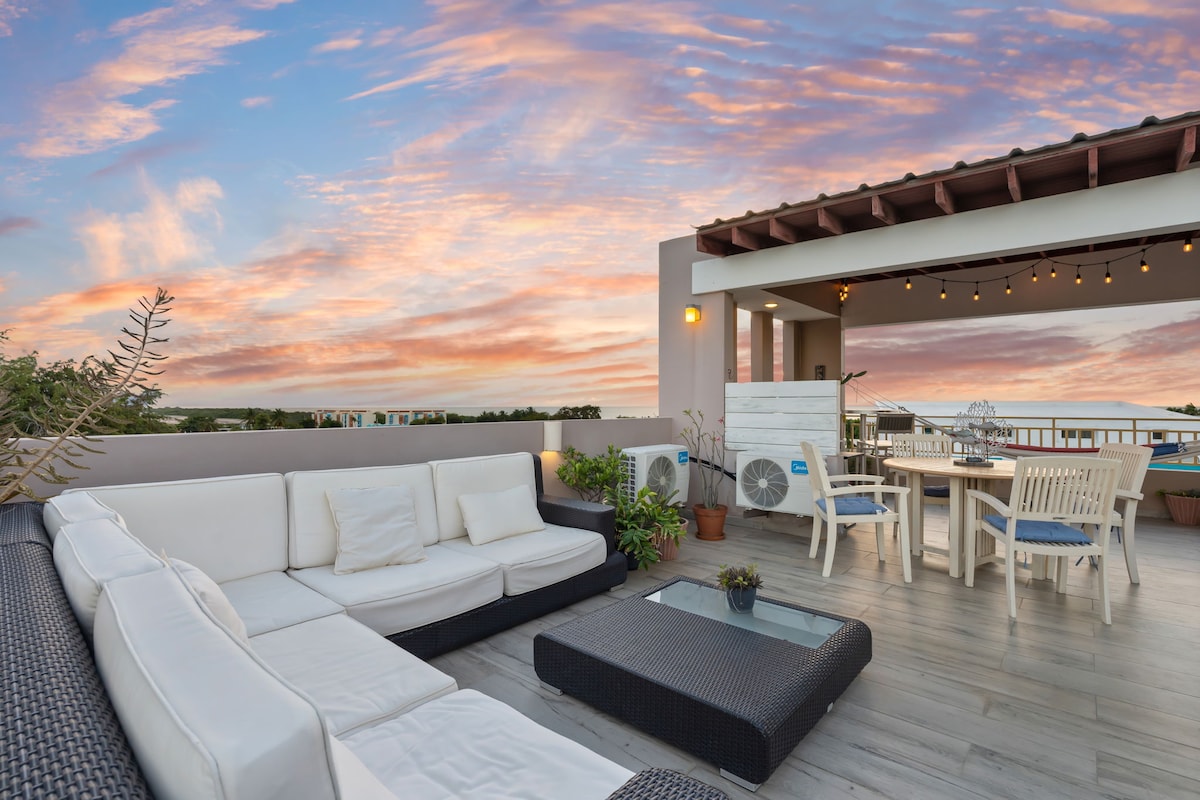热带日落顶层公寓•屋顶和热水浴缸