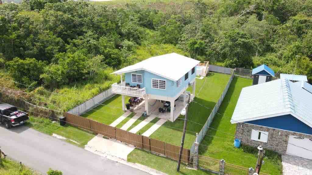 Villa Paraiso, our villa's elevated location offers panoramic views and magnificent sunsets. Wake up to postcard-worthy seascapes from your terrace. The glistening sea stretches endlessly, offering a tranquil backdrop to your stay. 2 bedrooms, 1 bathroom, kitchen, terrace with BBQ. A/C in bedrooms. 5-min drive to beach. Great for mountain biking, hiking & water sports. Solar Power System minimizes interruptions during outages.