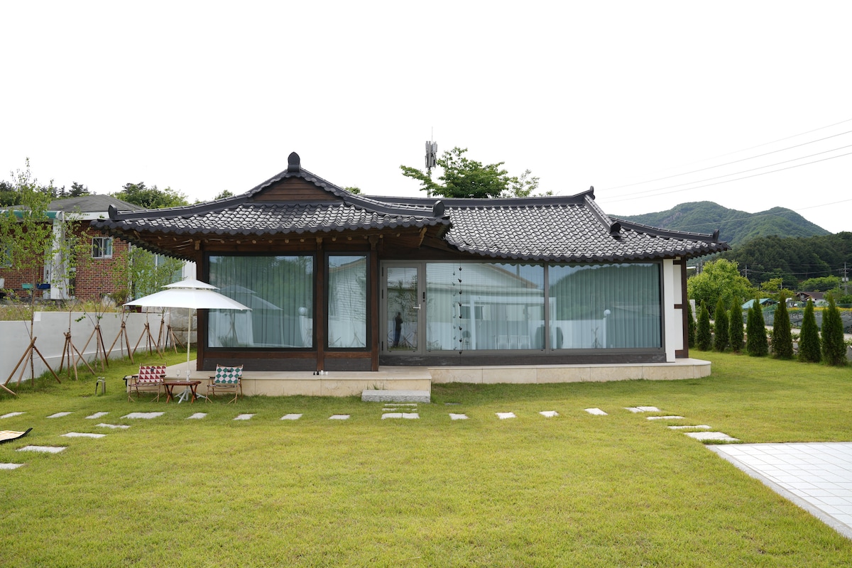 친구들과 감성 힐링 여행 🫧 불멍🎇과 함께 즐기는 바베큐 파티🍖 (✨무료✨) 가족들과 화목하고 조용한 시간을 보낼 수 있어요 공원과 산과 호수로 둘러쌓인 조용하고 자연이 살아있는 마을 속에 위치해있어요. 현대적 감각으로 재탄생한 한옥에서 멋과 정취를 느껴보세요🌿 🐶 강아지가 성장중입니다(since 2021.01) 개를 무서워하시나요? 편하게 알려주세요 ☺️ → 강아지를 무서워하시는 분들을 위해 🐾 강아지가 잠시 케이지나 따로 마련된 공간에서 지낼 거에요. 🥲 부모님 채팅이 무뚝뚝할 수 있어요.. 만나면 따뜻하신 분들입니다.