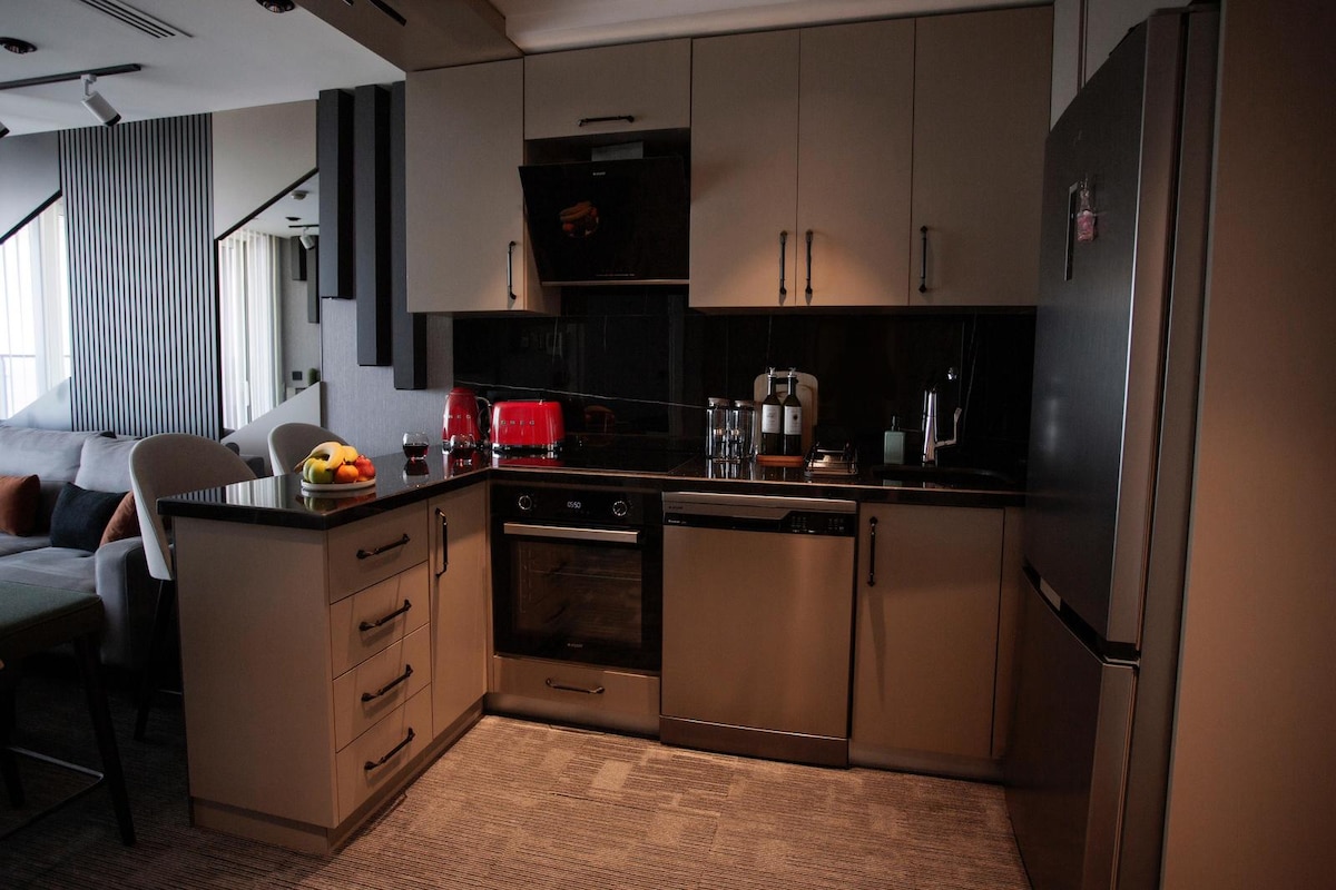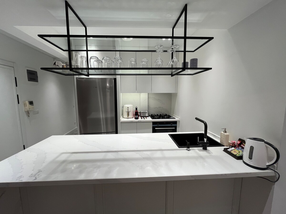 at 01/09/ 2025 we opened this Suite as one of the best modern Suites in the heart of Ortakoy area, less than a 2-minute walk to the Bosphorus Bridge, With an area of 60 square meters, this Suite is ideal for two people or a couple. It features a comfortable bedroom and a spacious sofa in the elegant living room. Modern furniture and stylish décor create a spacious atmosphere. A large window allows natural light to flood in. a fully equipped kitchen, and a smart TV, ensuring a comfortable stay.