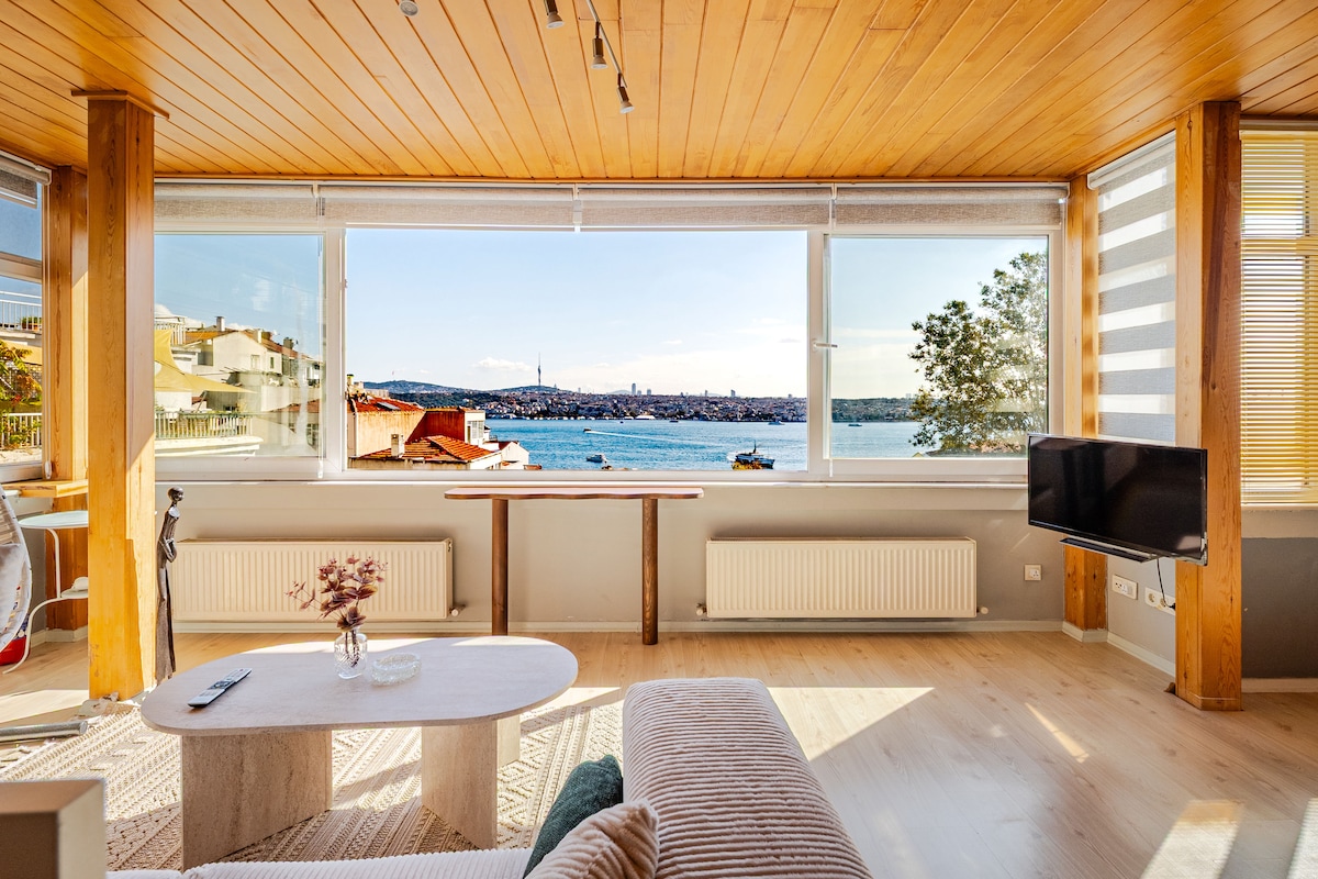 NOTE:There are 85 stairs up to the building entrance as there is no road for cars. It is not suitable for elderly or infants. After the stairs, the flat is on the 4th floor with an ELEVATOR! We provide bellboy service at extra cost. Step into this apartment and feel a sense of calm with a MAGNIFICENT PANORAMIC BOSPHORUS view. Wander straight through the modern, trendy and bright interior while watching the joyful traffic of ferries and sails. Home away home feeling for short & long term stays.