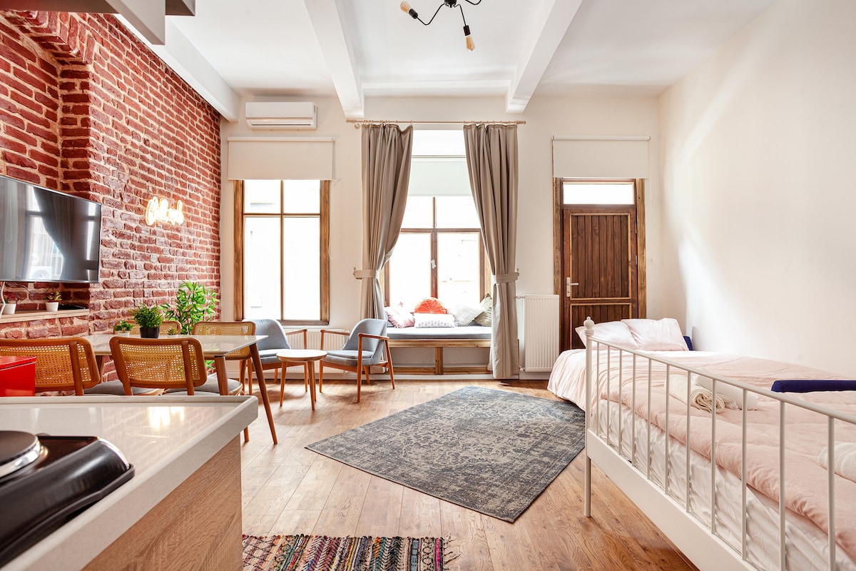 Hello dear travel lovers, in my specially designed apartment in Taksim, the oldest district of Istanbul, which has hosted many civilizations, in the center of Istanbul. I promise all travel lovers a unique accommodation experience in a peaceful apartment where you can rest your mind. As a young architect, it is a very special feeling for me to take part in the design of the flat. You will enjoy your stay in this apartment, which contains many experiences.Our flat is 2nd floor and no elevator