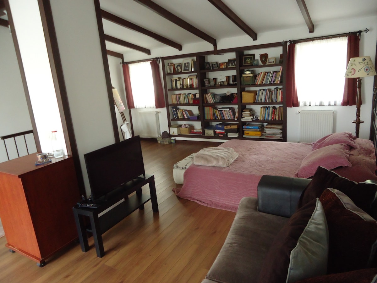 This spacious studio offers one double bed and a spacious living area. The living area has one large sofa which can be used as a bed for the additional guest. The studio offers a private kitchenette and a private bathroom with mid size Jacuzzi (140cm*80 cm). There is 24 hours door man and once every 2 days room service. The Turkish bath need to be booked upon arrival for free entrance. Also my guests will have %10 discount at the restaurant,please mention that you are guests of Yusuf:)