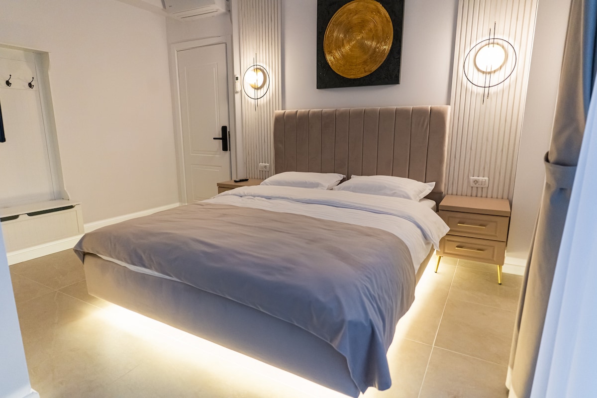 Spacious and comfortable, this room is ideal for couples, families or business travelers. It features a double bed and a sofa bed, providing extra space for relaxation or additional accommodation. The apartment includes a private bathroom with a shower, free toiletries and a hairdryer.For added comfort, it is equipped with a minibar, air conditioning, a flat-screen TV with cable channels, free WiFi and a storage cupboard. An elegant and welcoming space, perfect for a relaxing and carefree stay.