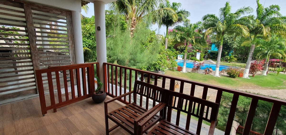 All of our chalets have a veranda with hammock, spacious bathroom, living, fully equipped kitchen, king size bed, split air conditioning, 20" Flat Screen TV, safe, and WI FI Internet in common areas.