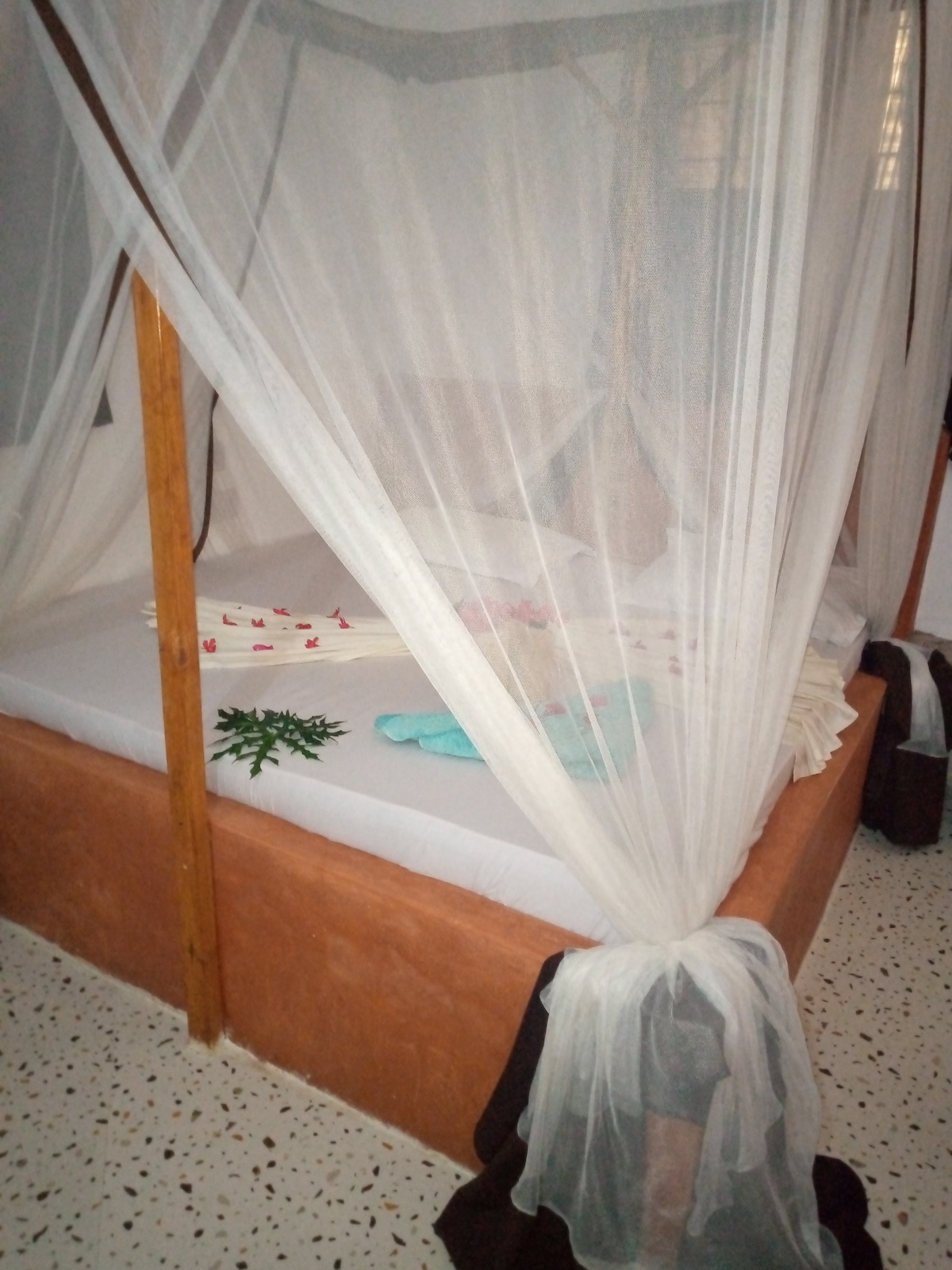 Cozy apartment 2 min walk from the beach with double bed, mosquito net, fridge, roof fan and recently renovated private bathroom (3 piece shower with HOT water, not always available on the island). It has a private, fully equipped kitchen, where you can cook and prepare fresh smoothies (food shop nearby), and a shaded veranda decorated with shells, perfect for relaxation. This could be a perfect place for beach lovers, honeymooners, families and those looking for a peaceful place in Zanzibar.