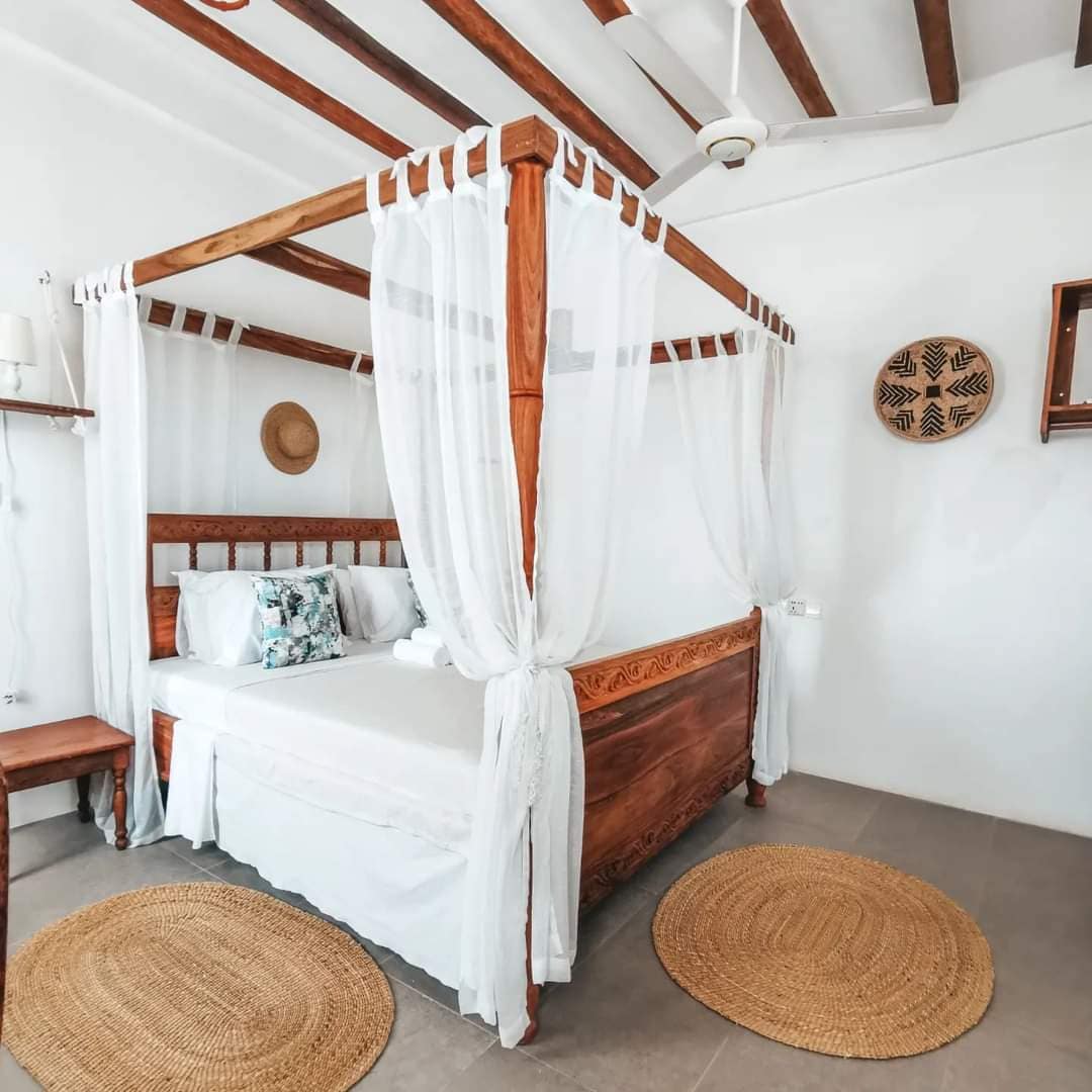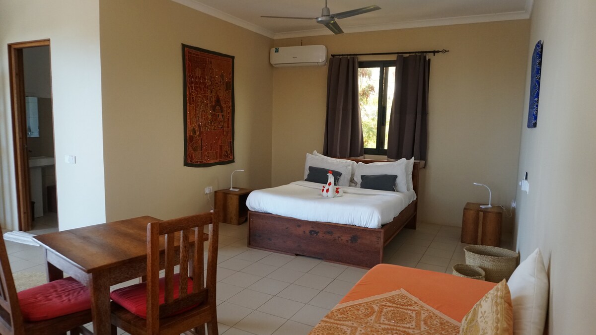 This large and comfortable apartment is created for people who want to feel the real atmosphere of Zanzibar surrounded by beautiful garden and the feel of ocean breeze . Perfect for couples, families with children and friends. 2 bedrooms with two king size beds, private bathrooms, for each room, air conditioning and a fully equipped kitchen. Feel at home with the whole family at this peaceful place to stay.