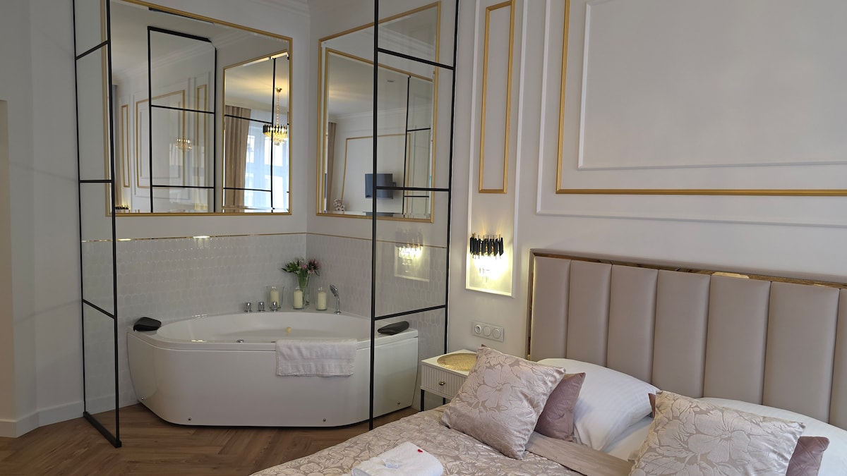 带按摩浴缸的黄金公寓