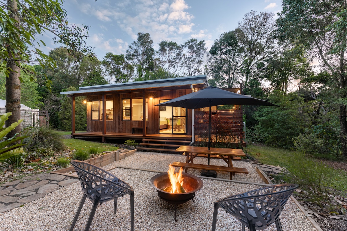 Refresh that woolly head at hidden and cosy Woollybutts cabin near eclectic Federal village, location of the famous Doma Japanese cafe. Sink into linen sheets, stuff your face on complimentary local produce and luxuriate with Salus amenities. Lounge by the resort-style pool, toast marshmallows around the fire pit in winter or recline on a hammock with a stunning valley view.