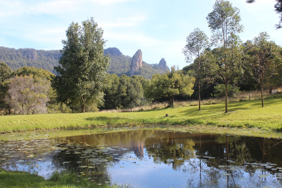 An unforgettable eco-stay with a difference in the magical Byron Hinterland. Heavenly king bed and four long singles. Lux bathroom. Dreamy fire pit. Indoor and outdoor living/dining/chilling. Aeropress organic coffee. Epic vistas and transformative quiet. We're just 10 mins from majestic Minyon Falls and 30 mins to Byron's beaches. Follow your map, a rainbow, or just succumb to the magnetism of rainforest and red earth. We can't wait to welcome you. It's pretty nice here.