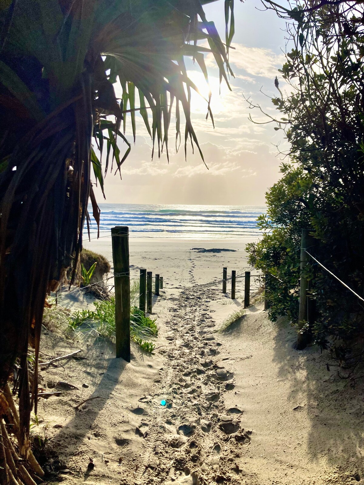 A rare beachfront offering ~ my home to be yours for XMAS 2025. Located right on beachside, from front door a 50 second walk (yes I timed it;) or 65 steps (yes I stepped it out;):) to the ocean. The space itself is draped in palm leaves & cabin style. Very comfy & fully self contained ~ a permanently fixed, converted caravan with extended lounge room, bathroom with shower & toilet, and a deck & benchtop with BBQ out front. ★ “Everything you need can be found in this charming abode!”