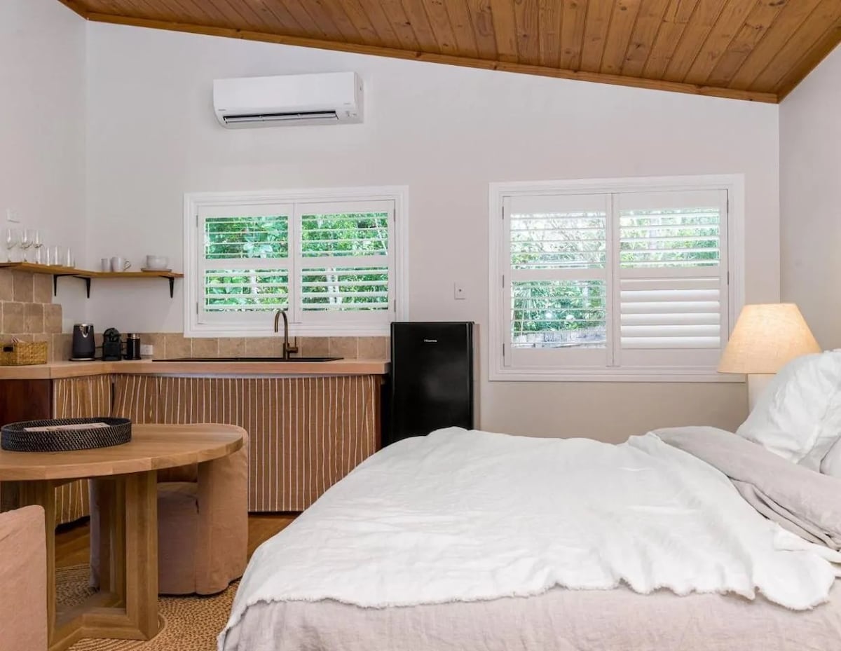 Enjoy a stylish experience at this centrally located cottage in Suffolk Park. Newly renovated with 2 x Queen Bedrooms complete with clothes storage + ceiling fans. Kooka Cabin is for the couple that wants to drop their bags and head straight out to Byron's playground - short distances to beaches, the hinterland waterfalls and walks. Enjoy the close proximity of many restuarants, cafes and bars. For the modern traveller that has no desire to cook at home we offer a lux kitchenette.