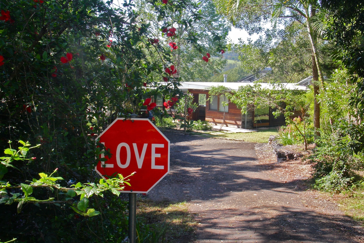 An unforgettable eco-stay with a difference in the magical Byron Hinterland. Heavenly king bed and four long singles. Lux bathroom. Dreamy fire pit. Indoor and outdoor living/dining/chilling. Aeropress organic coffee. Epic vistas and transformative quiet. We're just 10 mins from majestic Minyon Falls and 30 mins to Byron's beaches. Follow your map, a rainbow, or just succumb to the magnetism of rainforest and red earth. We can't wait to welcome you. It's pretty nice here.