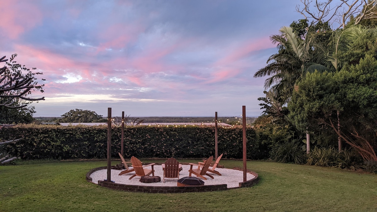 🌴 Outdoor entertainment area with pool. 🌴 Private cottage with modern-rustic design. 🌴 Floor-to-ceiling triangular window with hinterland views. 🌴 Unwind in nature and recharge in your private swimming hole. 🌴 Pet-friendly. 🌴 Outdoor fire pit area. 🌴 Perfect getaway for couples, families, friends and work retreats. 🌴 Fresh eggs when laying and seasonal oranges. 🌴 Short drive to beaches, shops and restaurants. 🌴 No Cleaning Fees.