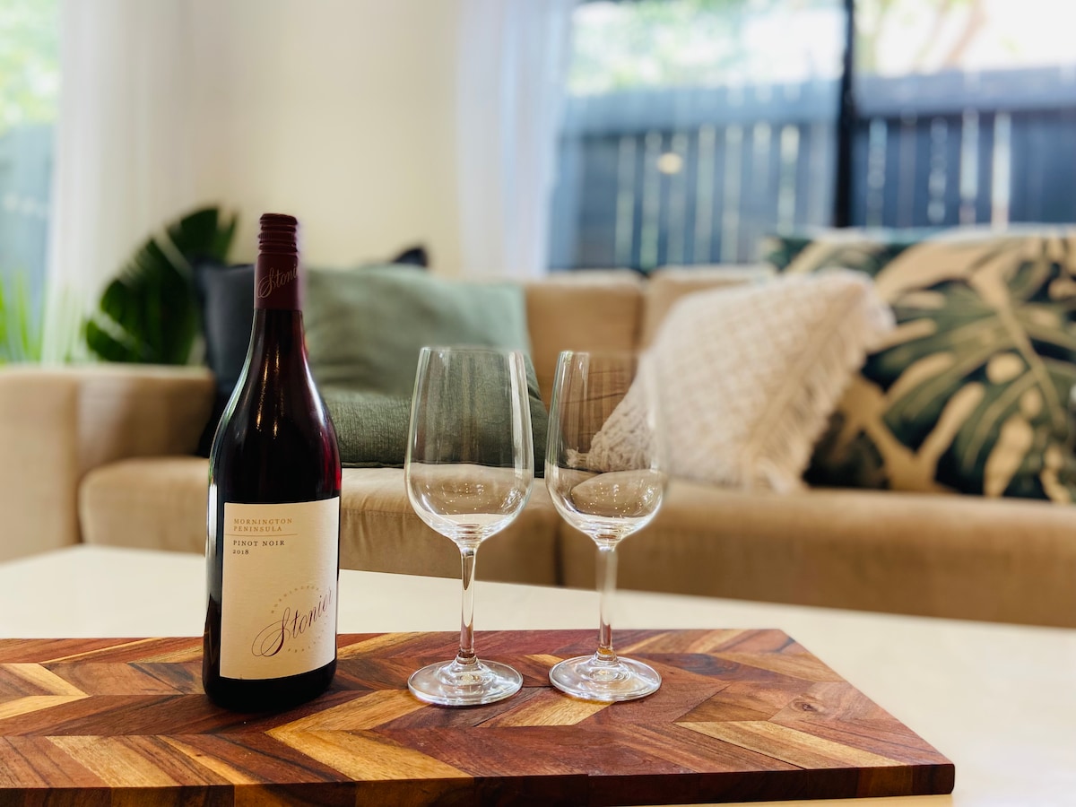 A calm stylish space. Designed for the discerning traveler, best suited for couples, singles or small families who want to be spoilt in this beautifully appointed studio space. Wake up to beautiful natural light & freshly ground coffee from the espresso machine, OR stroll to the shops via the beach. There's a seamless flow from outside in, with the alfresco bar linking courtyard to kitchen, perfect anytime. Finally finish a perfect day in king bed luxury, made with the finest linen