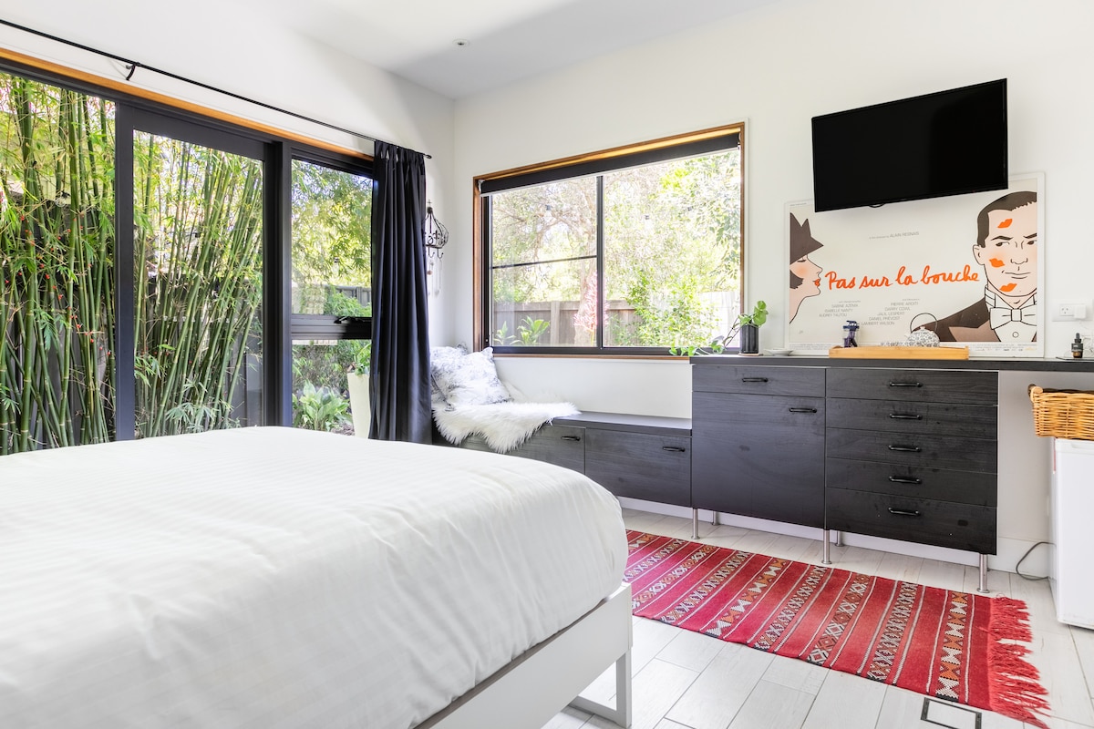 Muchacha is a stylish, newly renovated open plan studio situated in the prestigious suburb of Ewingsdale, only 10 minutes drive from the centre of Byron Bay. Designed for lovers of art and minimalist design this gorgeous self contained studio is the perfect place to kick back and enjoy your Byron experience. Immersed in a manicured tropical garden our studio features a fully equipped kitchenette, bathroom, Smart TV, high speed NBN internet, deluxe queen sized bed and veranda.