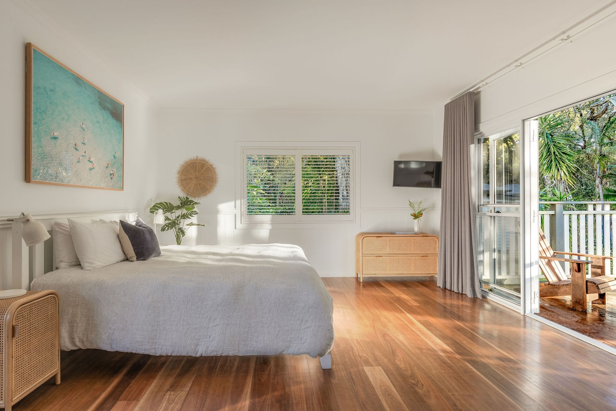 Welcome to Shady Palms Byron Bay, ideally located only a few minutes walk to Clarkes Beach, the world famous surf break at The Pass and the iconic Walgun Cape Byron lighthouse track. A leisurely 1km stroll along the beachfront takes you into the centre of town, while the popular Top Shop café is just around the corner. Featuring a private entrance on the lower level of our home and a bright, airy design, Shady Palms is the ideal coastal escape to enjoy Byron’s vibrant and laidback lifestyle.