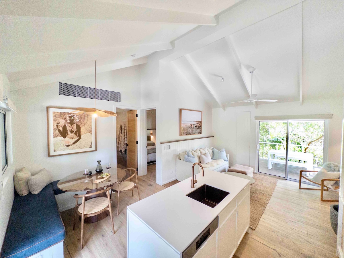 Couples Retreat You simply can not stay closer to the beach! Modern and fully self contained, this unique converted space was once a shelter for boats. Now the closest accommodation to the beach avail. The constant sound of the ocean will lull you to sleep and wake you for that early swim or beach walk. Direct access to the beach via the private path is only 20 steps from your front door to the clean white sand. Our beach is pristine, uncrowded and offers some fantastic surfing opportunities.