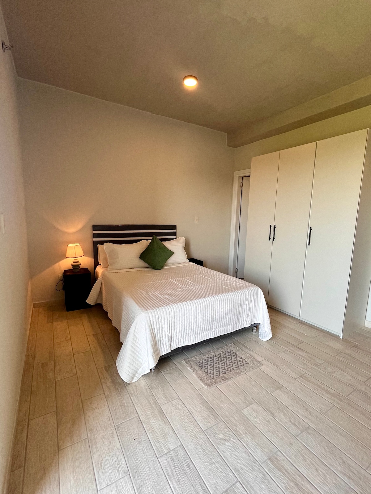 Ideal para alejarse del ruido pero cerca de todo lo que uno necesita, hermoso departamento monoambiente con cama matrimonial y sofa cama. Heladera, horno, cocina totalmente equipada con mármol y todo lo necesario para una comoda estadia. Aire A, frio caliente asi como agua fria caliente en toda la instalación, baños con mamparas y finas terminaciones. Ubicado en una altura con excelentes vistas, en un área verde de 720 m2, amurallado con cercado eléctrico perimetral, totalmente iluminado.