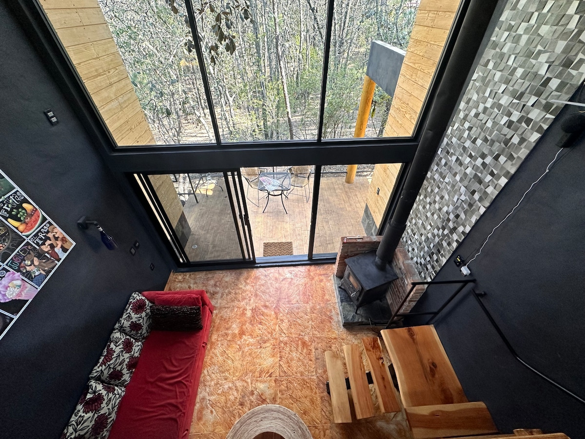Ven y conoce la más bella cabaña Boutique del Parque Nacional del Chico, arquitectura moderna donde se funde el hierro, la madera y el barro cocido, en medio de un bosque rico en oyameles , ocotes y fauna silvestre. Un lugar lleno de quietud y paz que hará relajar tus sentidos y donde por las noches sentado al fuego de la chimenea y un par de copas de vino harán una velada romántica inolvidable o por las mañanas ver juntos el amanecer en nuestro increíble mirador hará de tu visita tu lugar ideal