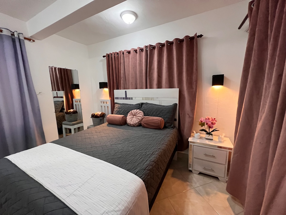 Immerse yourself into our newly renovated large studio apt nestled in the heart of Sosua. It is just 2 mins walking to a private beach. This apartment benefits from being in a safe and private location. On-site, you will have a personal property manager to assist you with all your needs, a laundry, a cafe.