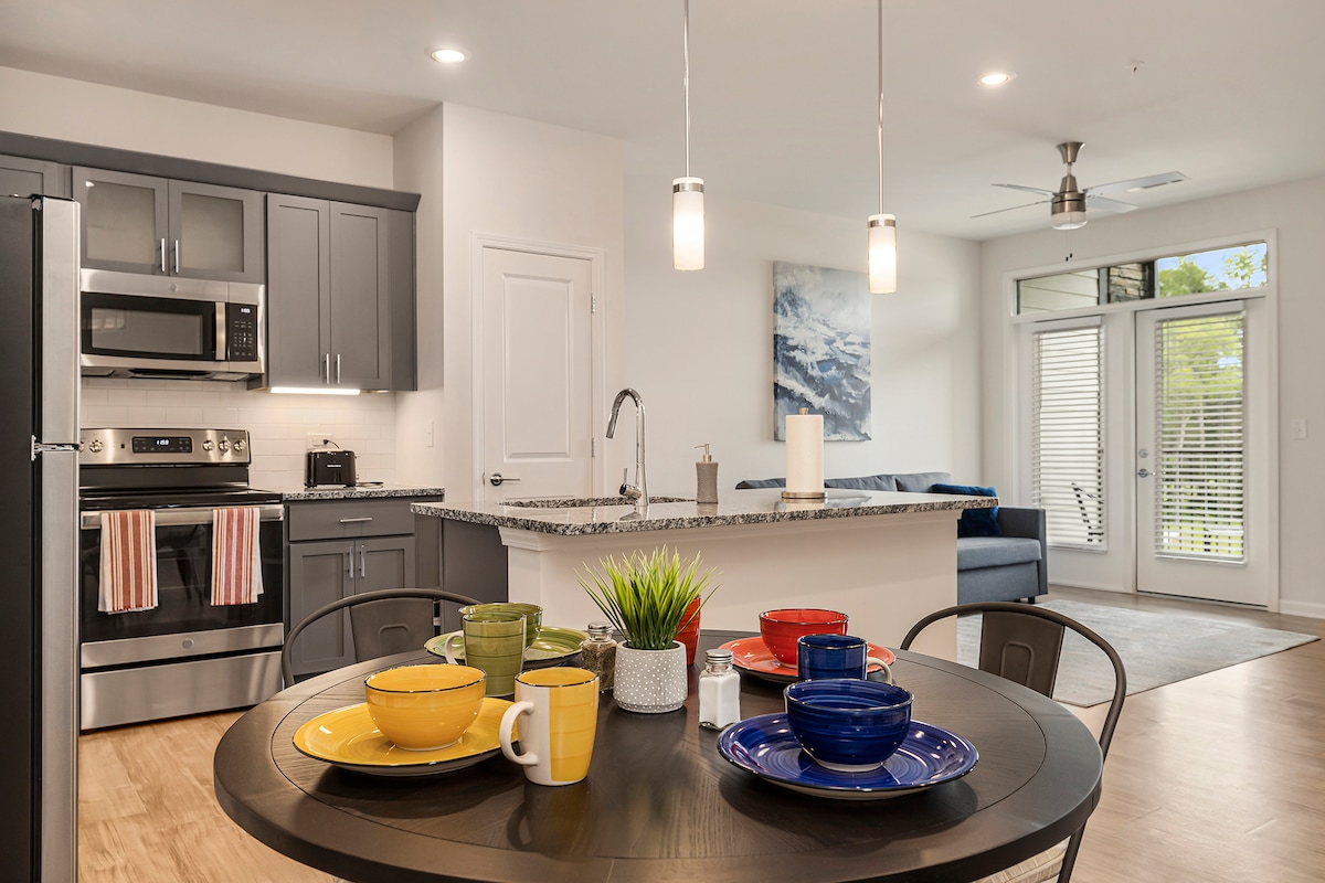 Sporting high-end, sophisticated finishes, such as 9-foot ceilings, walk-in closets and private balcony. Your gourmet kitchen, with SS appliances, granite counters and ceramic backsplashes, will have you cooking like a pro in no time! You’ll find an array of resort-style amenities such as our refreshing saltwater pool or our state-of-the-art fitness center with yoga room. Guests can take advantage of our poolhouse with billiards room, Starbucks bar, grill pavilion and business lounge.