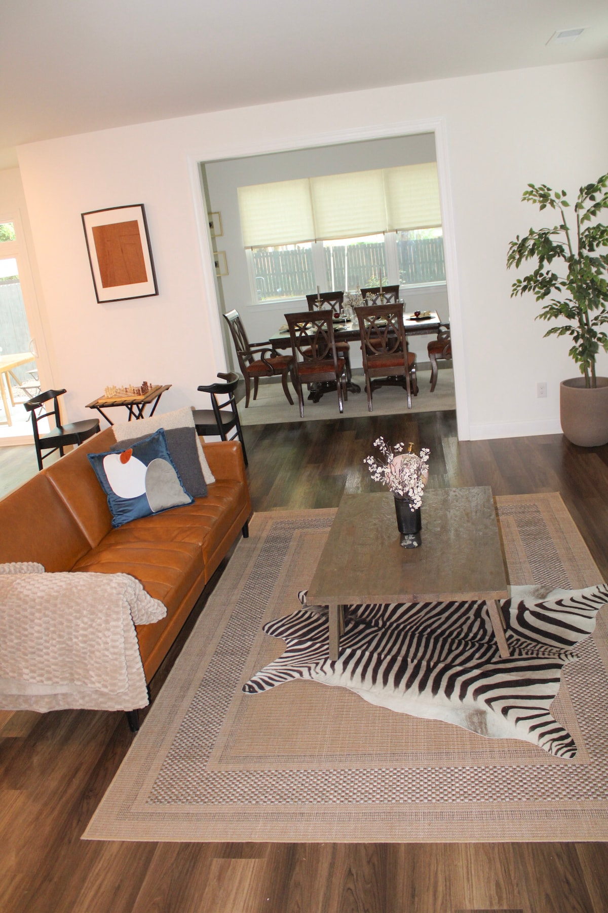 Welcome to our mid-century modern boho retreat 🌿✨ This stylish 3BR, 2BA home blends clean modern design with cozy bohemian touches. Inside, enjoy a bright living area with a fireplace and relaxing, thoughtfully decorated bedrooms. Step outside to a spacious backyard with dining under the stars, a private hot tub, and a fire pit for gathering. Perfect for families, friends, or a peaceful getaway, this home offers the ideal mix of comfort, style, and relaxation.