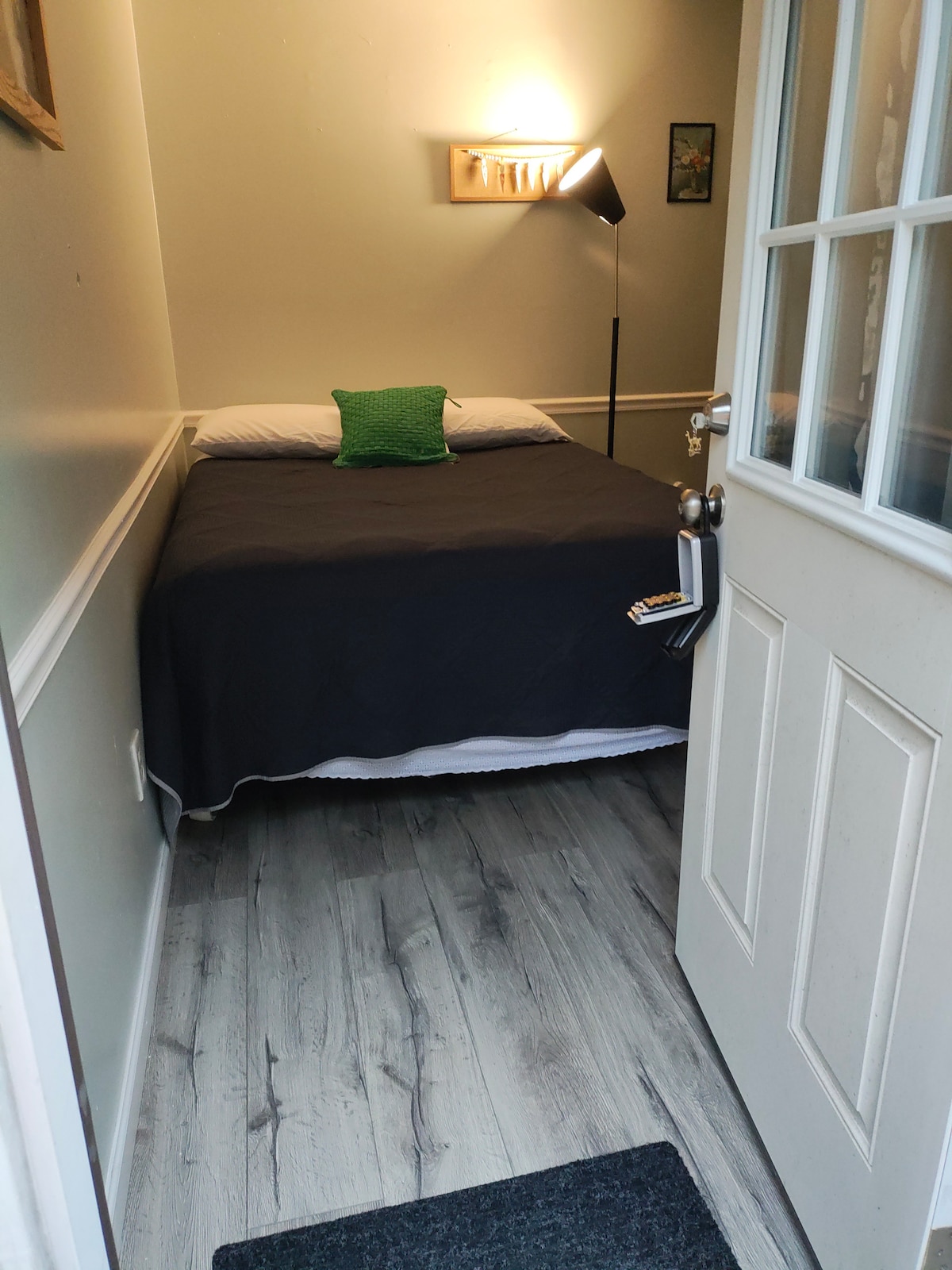 My space is very roomy and comfortable with blinds and entry door that brings in a lot of light when opened. The patio has seating for two for evening relaxation. The patio is shaded in the evening, and you can enjoy your coffee while the sun rises behind the trees in the morning. Beautiful landscape and vegetable garden to view along with the wall of trees at the back. ROKU TV, Netflix and HBO for entertainment. Kitchen appliances for basic needs.