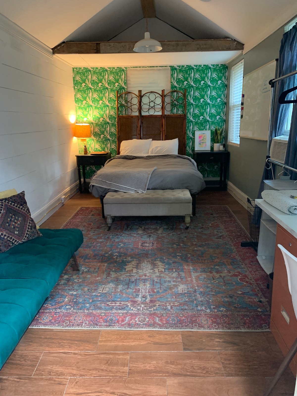 This airy and bright carriage house studio is nestled on a quiet street in the heart of Virginia-Highland, one of Atlanta's most popular neighborhoods. Just blocks from Piedmont Park, Atlanta Botanical Gardens, the Beltline, Ponce City Market, and many restaurants and bars. Only 2 miles from the Emory, Georgia Tech, and Georgia State campuses. This studio apartment has a queen-sized bed, bathroom, large desk, and sitting area with a coffee maker, refrigerator, and microwave.