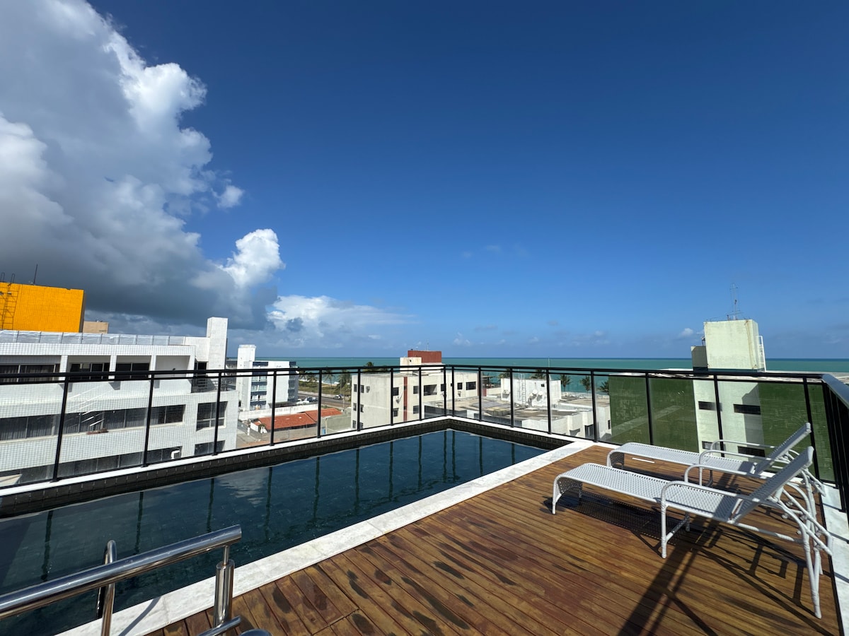 Apartamento novo em prédio pé na areia, de frente para o mar do Bessa, com terraço privativo e piscina compacta, ideal para momentos de relaxamento! O espaço é automatizado com Alexa e acomoda confortavelmente 4 hóspedes, sendo 100% equipado e funcional. Ideal para quem busca conforto, localização estratégica e uma ótima experiência!