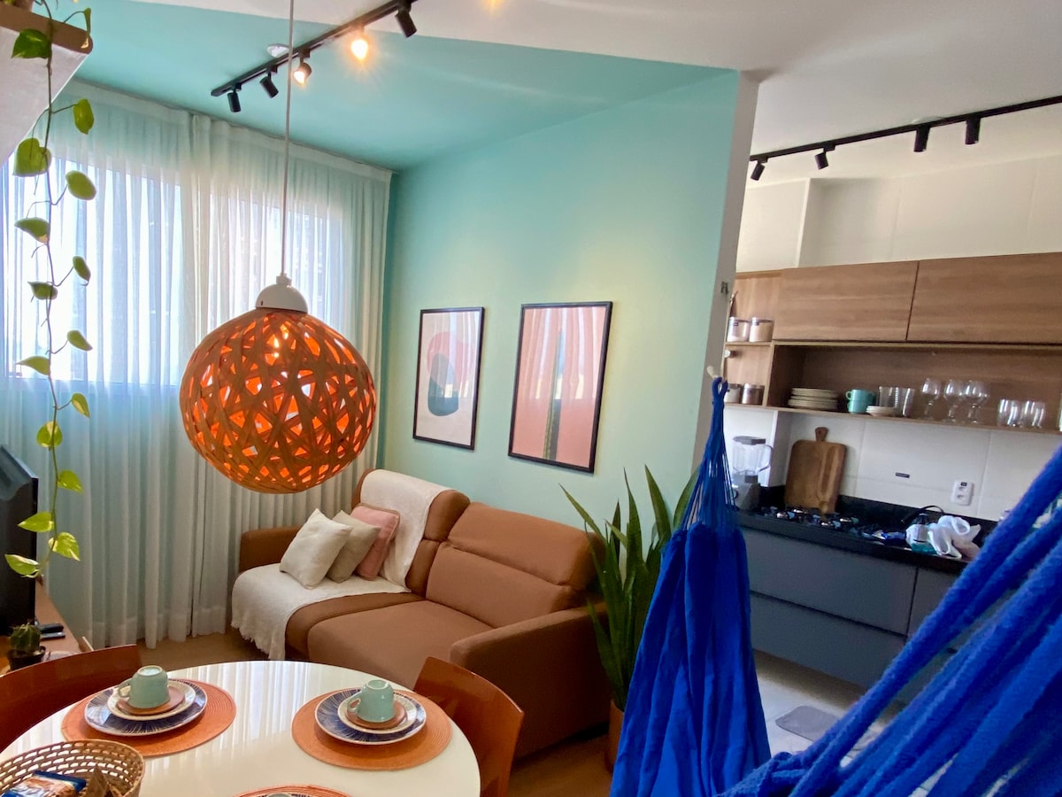 Divirta-se com a família ou amigos neste lugar aconchegante e único. OBS: Acima de duas pessoas informe no app pois é cobrado taxa adicional por pessoa. Informe também se trouxer seu pet; Área gourmet: cooktop, frigobar com freezer, micro-ondas e utensílios; Suíte para 4 pessoas e uma rede na parte externa. PERTINHO DE: Academia Banco do Brasil Bares Lancherias Farmácias Lavanderia 60min Padaria que abre 6h Pet Shop Praça Praia Posto de Gasolina Parada de ônibus Restaurantes Supermercados