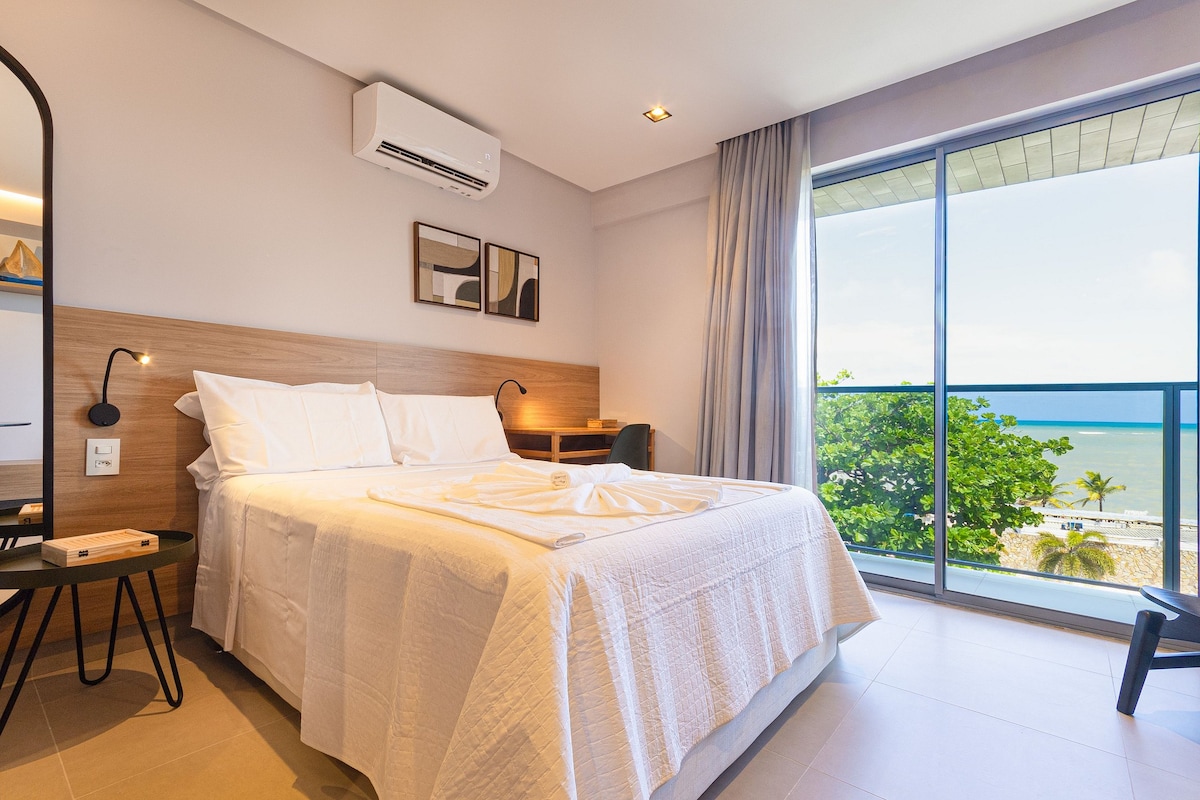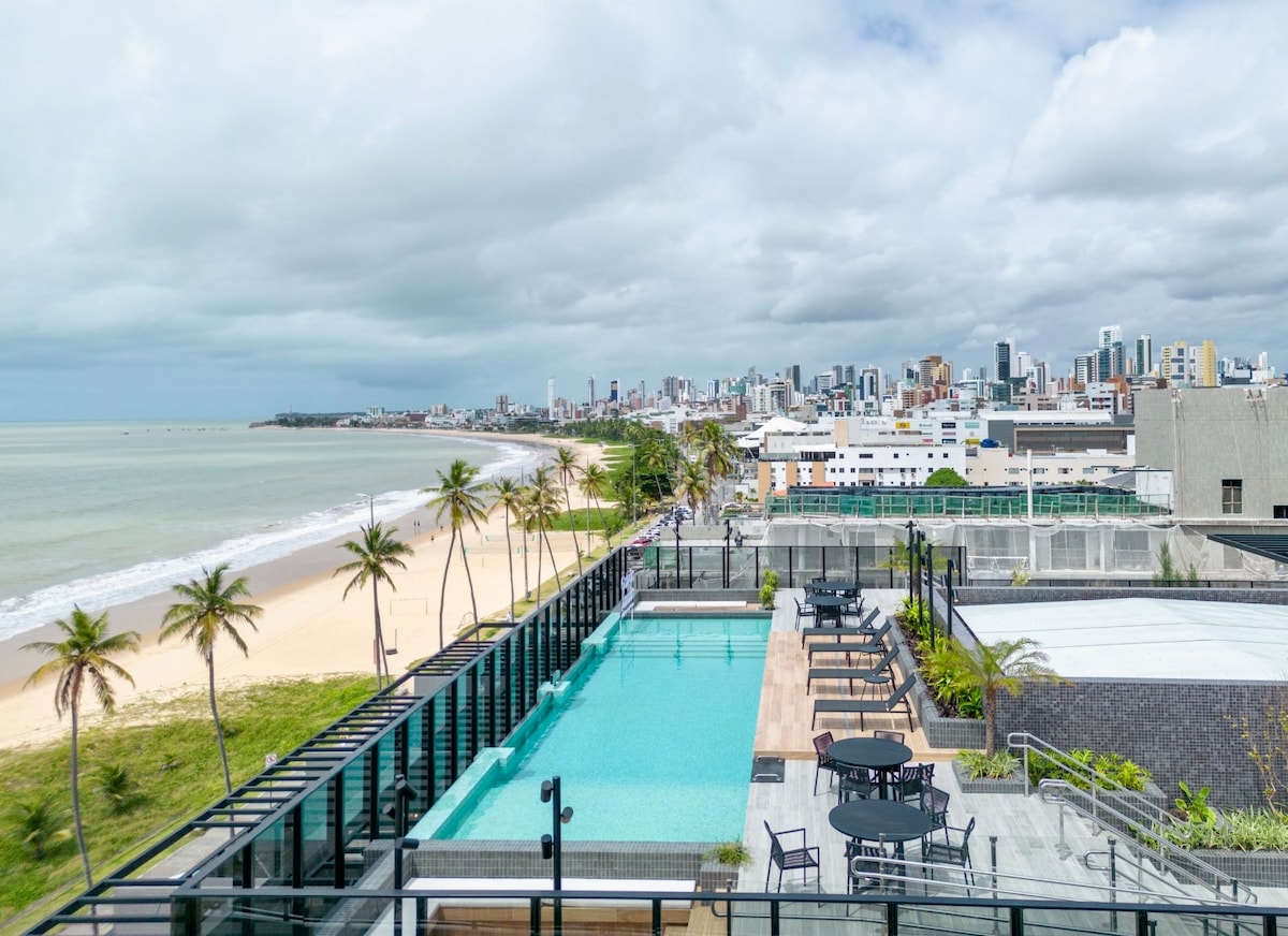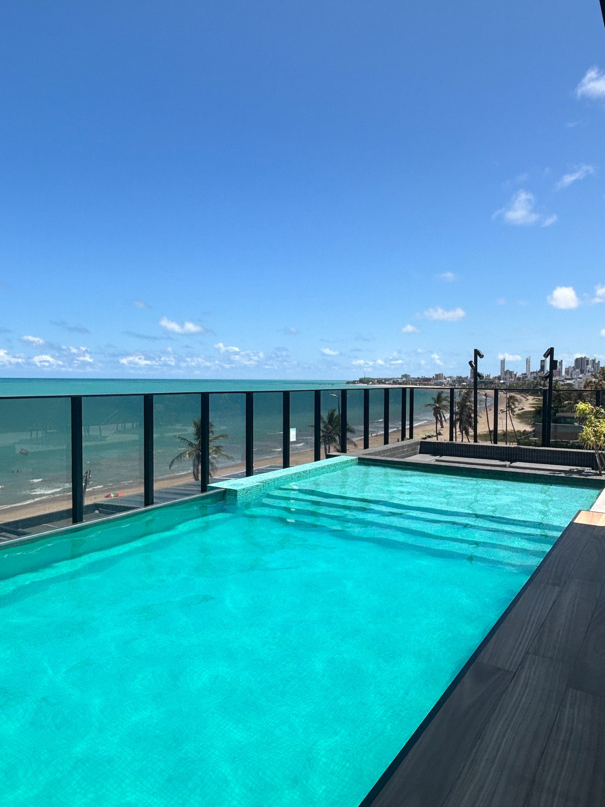 Tenha um pedaço do paraíso aos seus pés! Loft novo, recém mobiliado, em frente ao mar do Bessa, perfeito para famílias pequenas (até 3 pessoas) ou para viajantes individuais. Está dividido da seguinte maneira: lazer privativo com jacuzzi e vista mar privilegiada, suíte de casal com smart TV 50' e estação de trabalho, cozinha compacta e completa com principais utensílios, integrada com o quarto, tudo isso somado a uma belíssima vista do primeiro amanhecer das Américas.