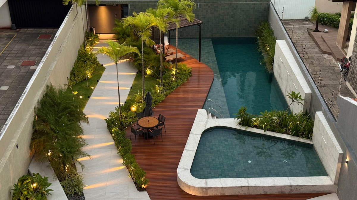 You deserve to wake up to the ocean — not an alarm clock. At Home Cactus, every room opens to the most coveted view on João Pessoa’s coast: the easternmost point of the Americas, just for you. A few minutes from Ponta de Campina Beach, 10 minutes from an unforgettable sunset, and close to Areia Vermelha Island, your day begins on the hammock in the living room. Air-conditioned rooms, 600MB internet, pool, gym, free parking, and a pet-friendly stay. Here, even rest reaches another level.